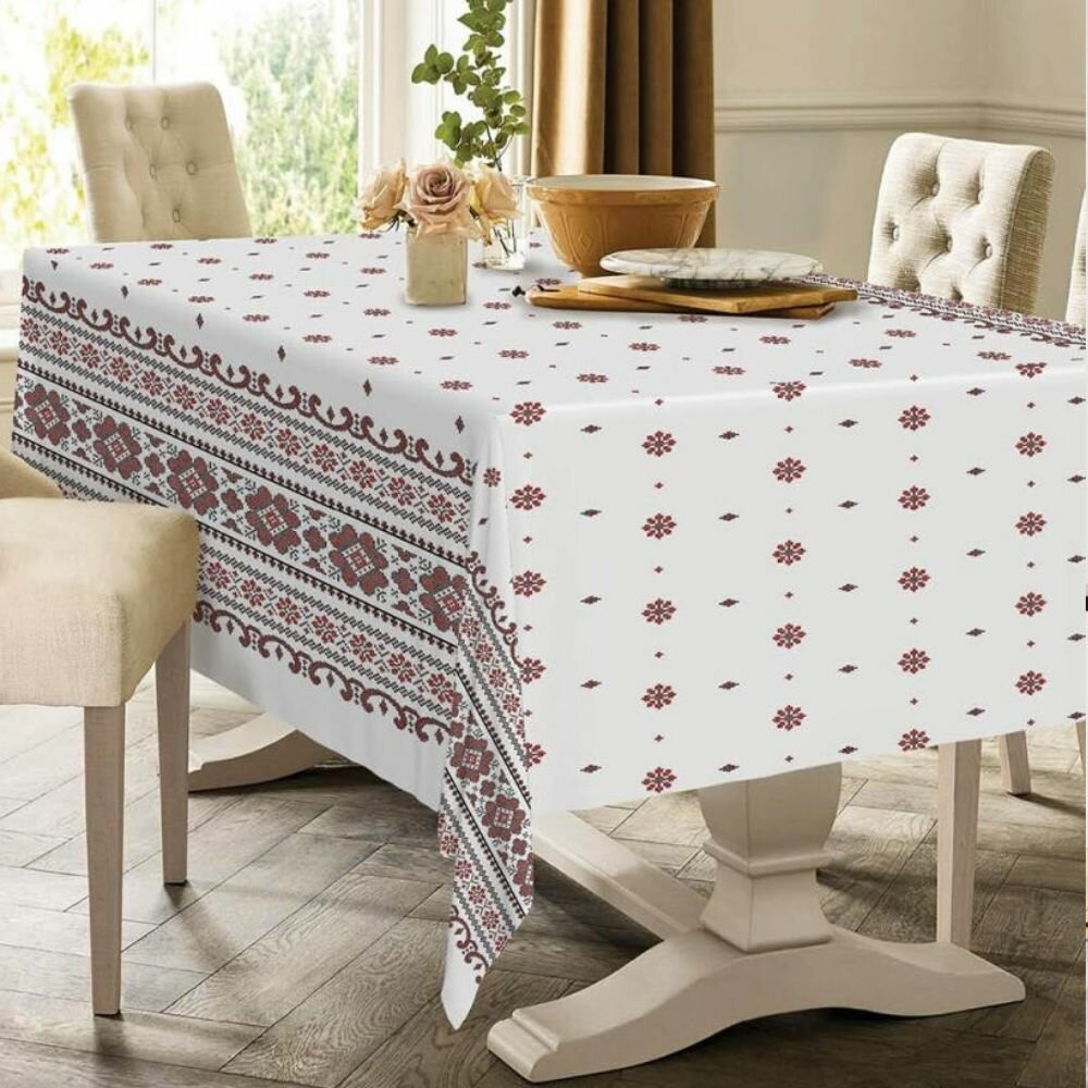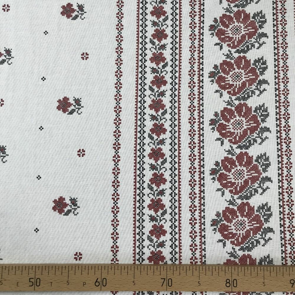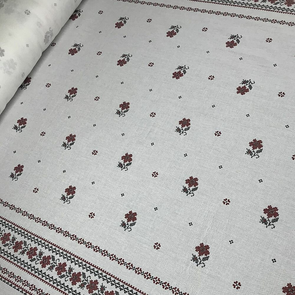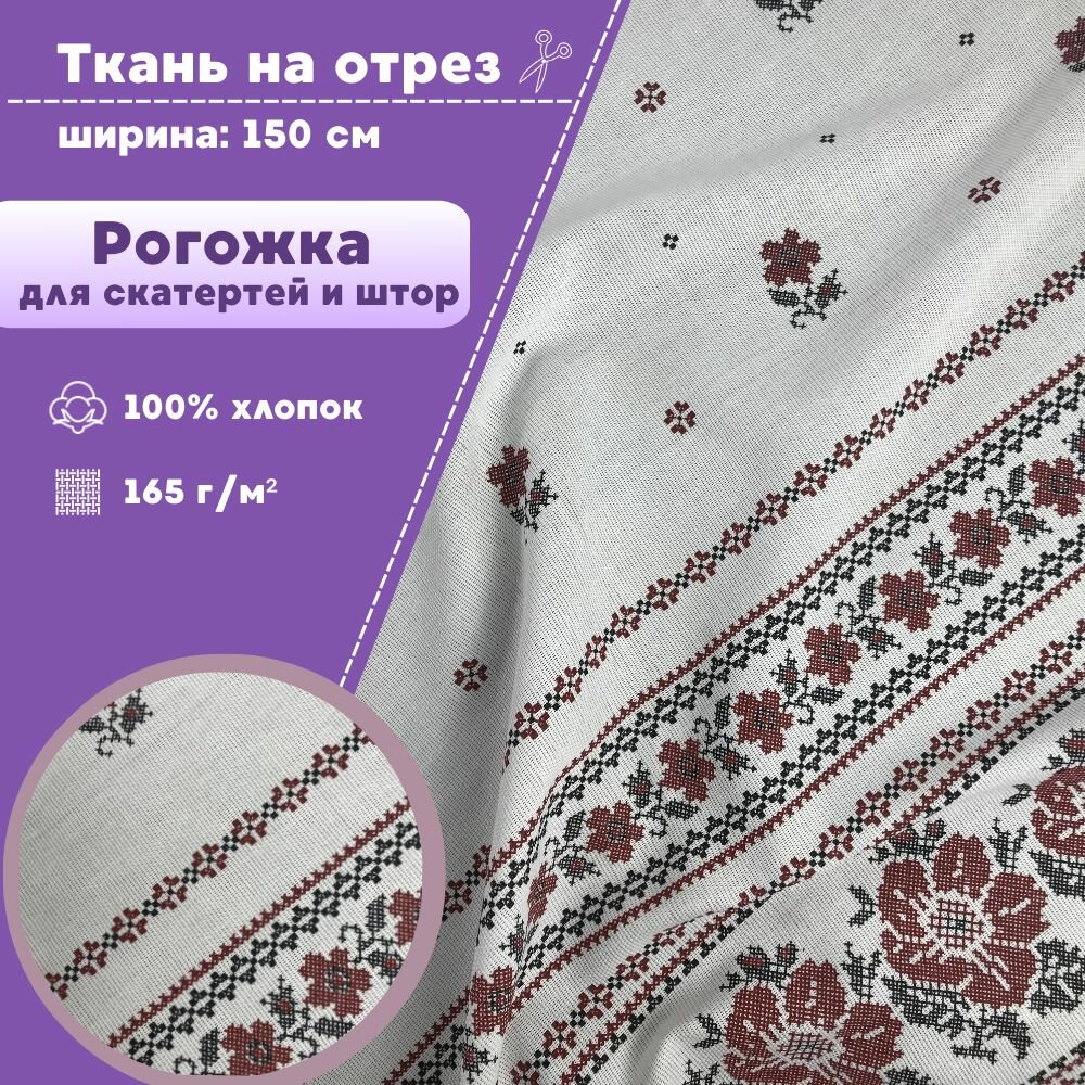 Купить ткань для скатерти/штор Рогожка "Вышиванка" белый, ш-150 см, на отрез, цена за пог.метр