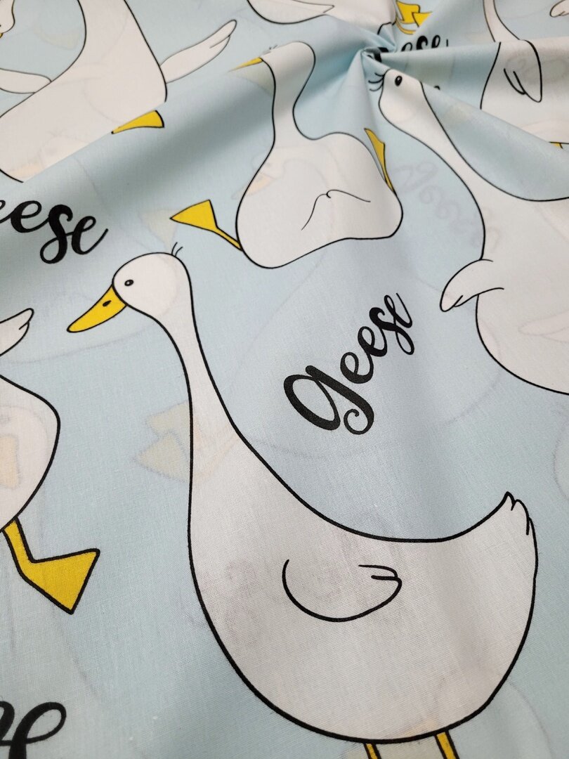 СохранитьТкань Поплин,Узбекистан"Гуси на мятном" 100*150см интересное: