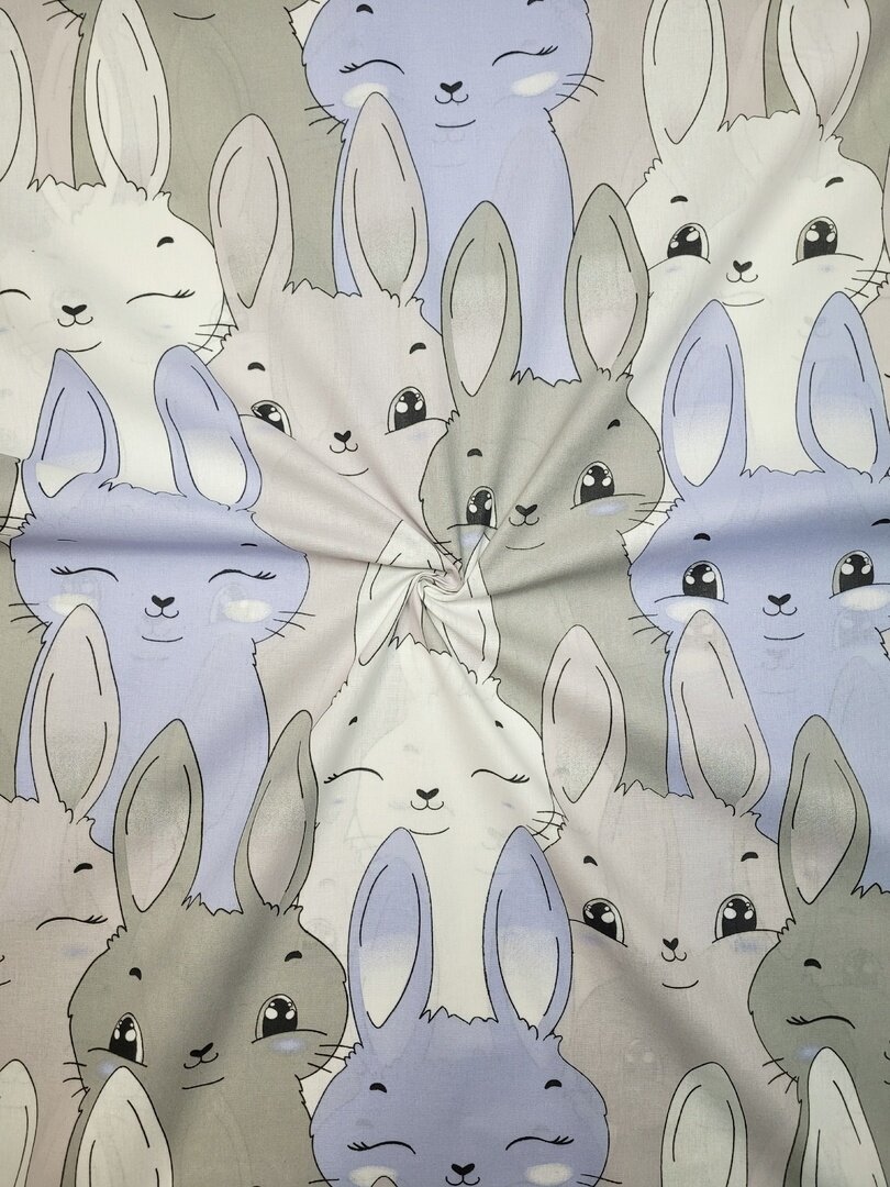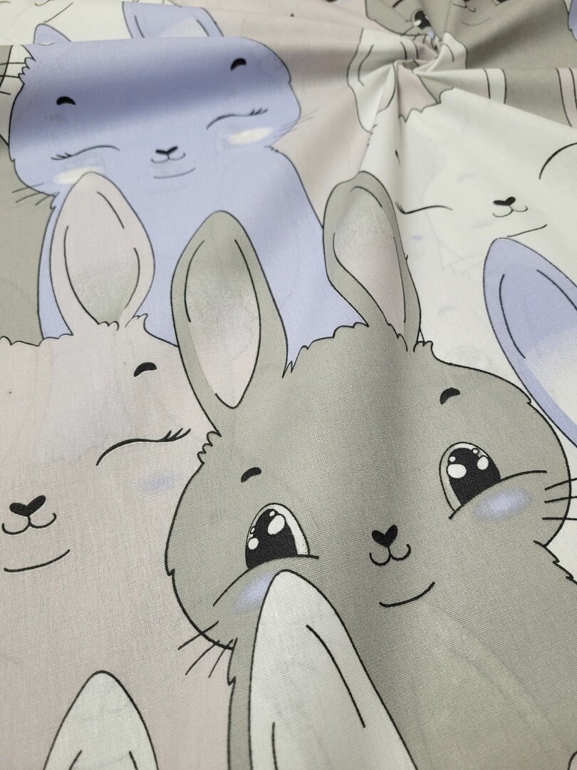 Ткань Поплин,Узбекистан"Зайки на сером зиг-заге" 100*150см