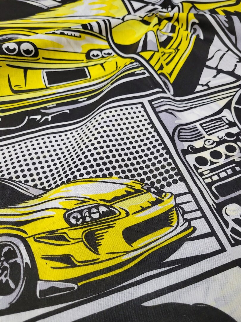 СохранитьТкань Поплин,Узбекистан"Гонки желтые" 100*150см интересное: