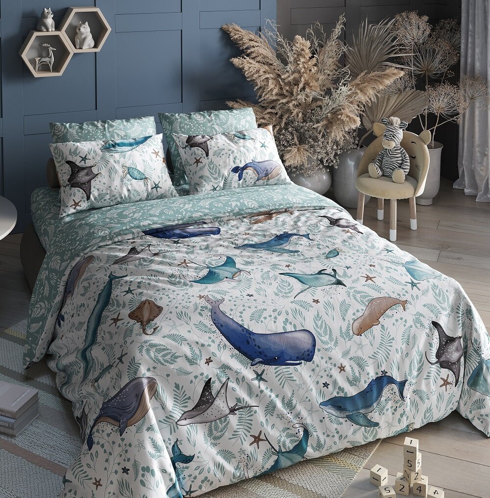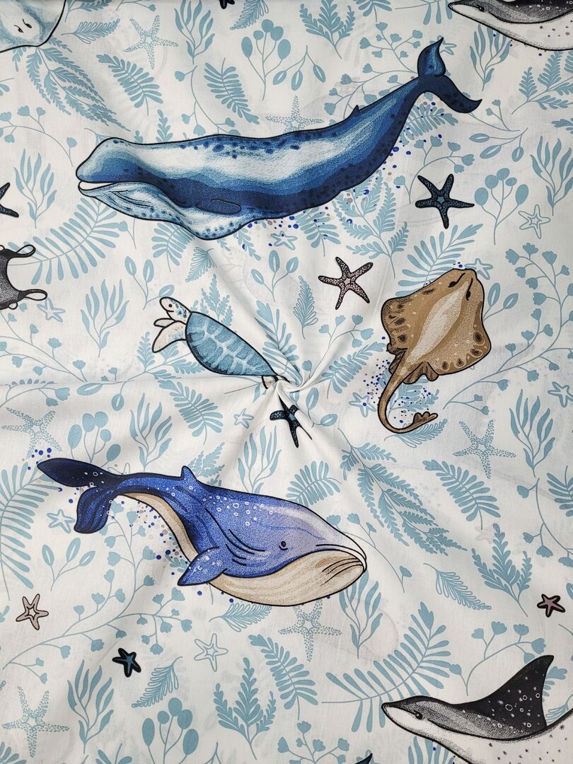 Купить Ткань Поплин,Узбекистан"Кит и скат" 100*150см