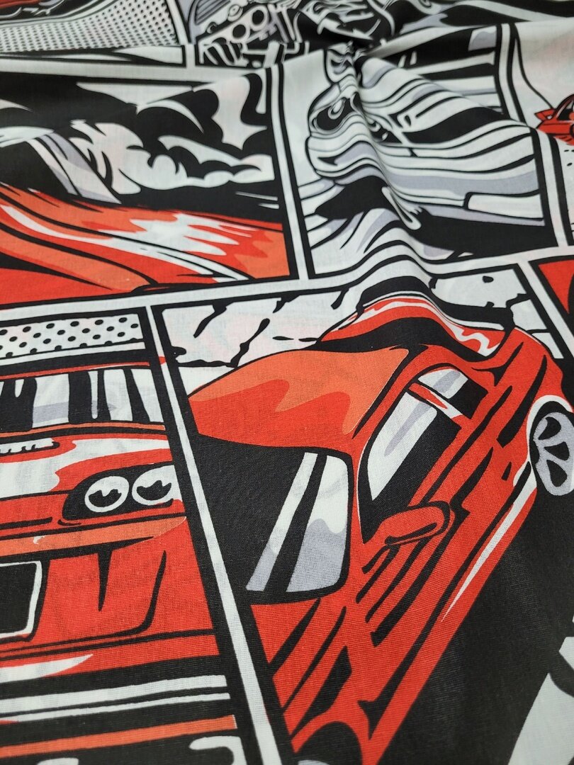 Купить Ткань Поплин,Узбекистан"Гонки красные" 100*150см