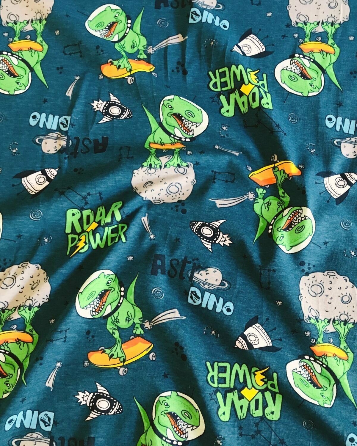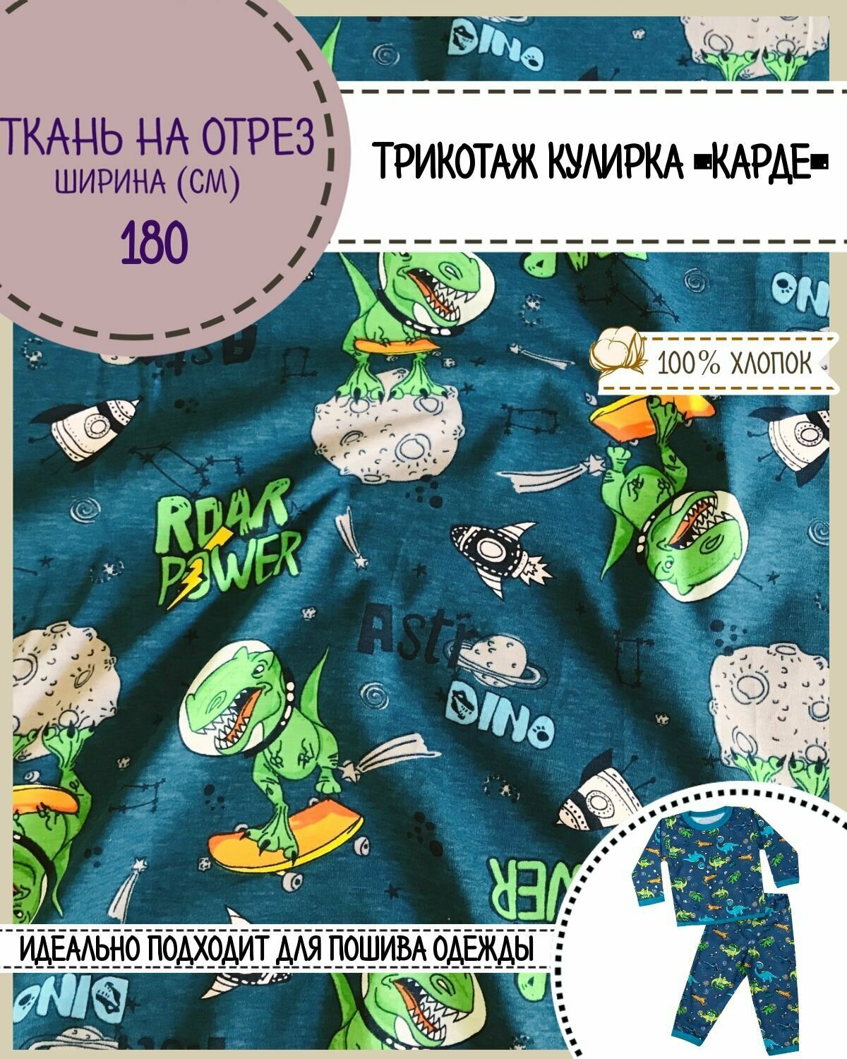 ткань Трикотаж Кулирка Карде "Динозавры", 100% хлопок, пл. 165 г/м2, ш-180 см, на отрез, цена за пог.метр интересное: