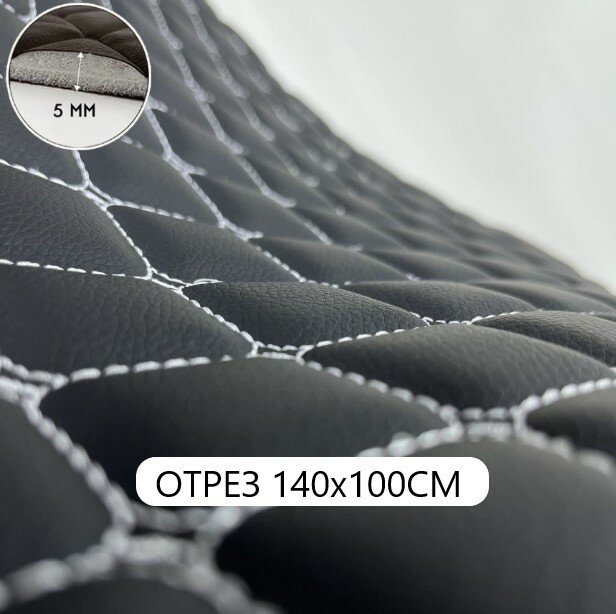 СохранитьСтеганая экокожа квадрат черный с белой ниткой (140*100см) кожзам стеганный, для перетяжки салона авто, мебели интересное:
