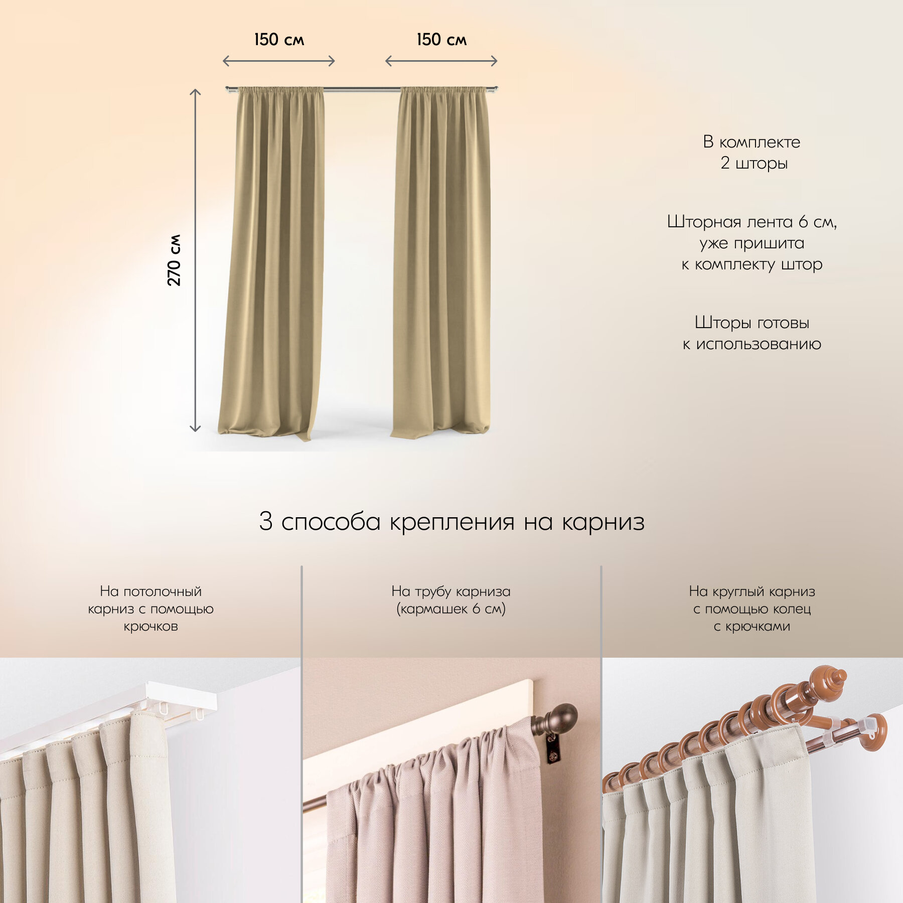 Купить Комплект портьер Блэкаут Стайл 150*270 бежевый. Шторы для дома.