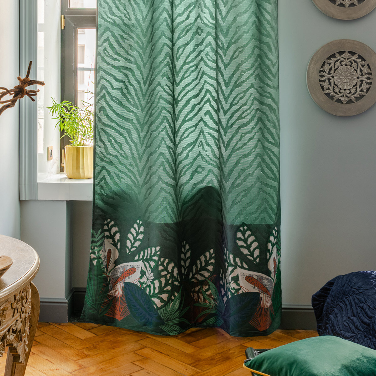 Штора готовая жаккард Shangri La 150x260 см Moroshka цвет Зеленый интересное: