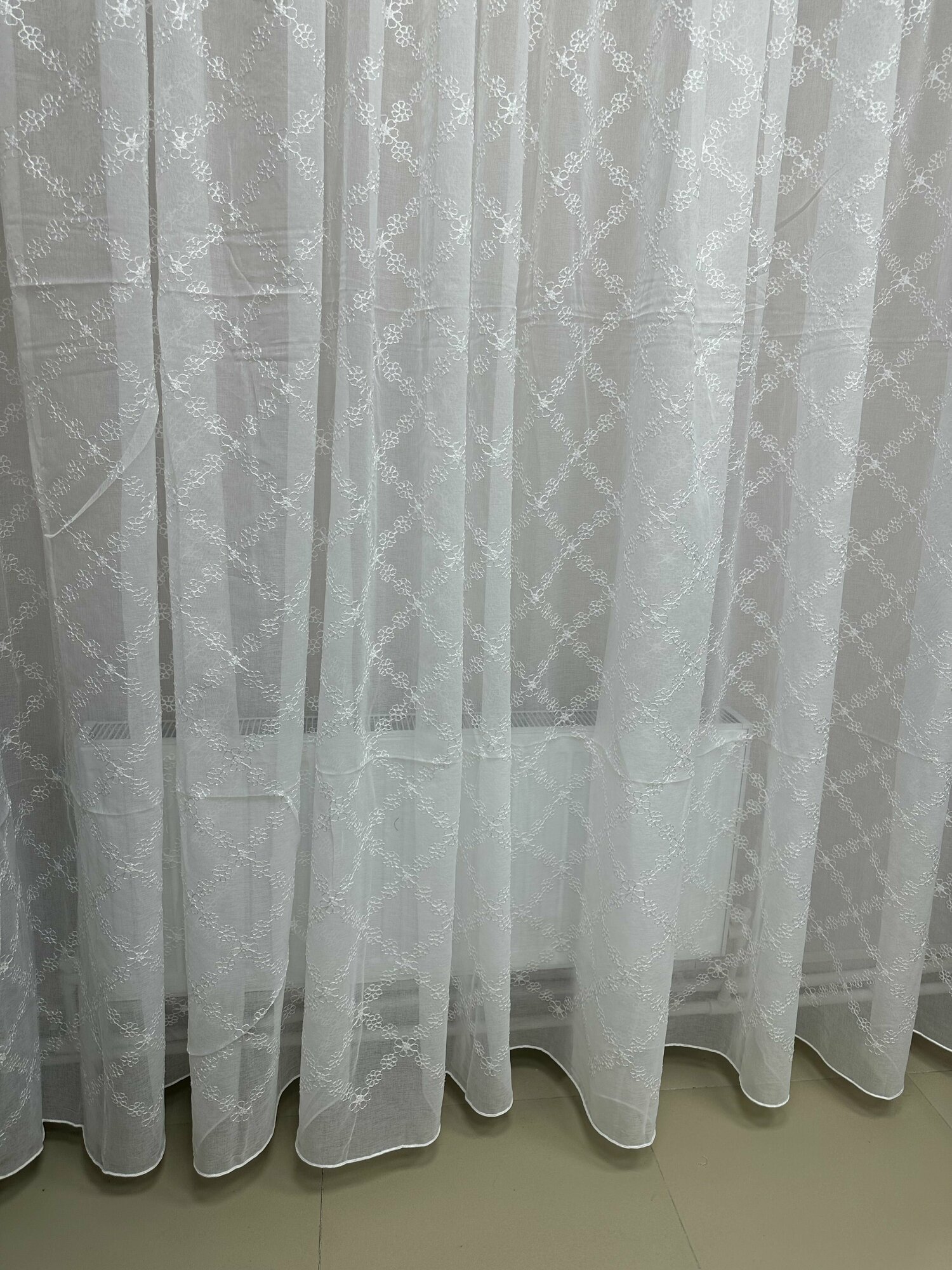 Купить Тюль Батист Лён Вышивка Ромбик Цветок 300*250