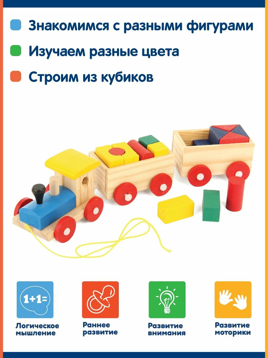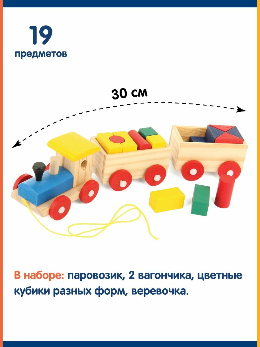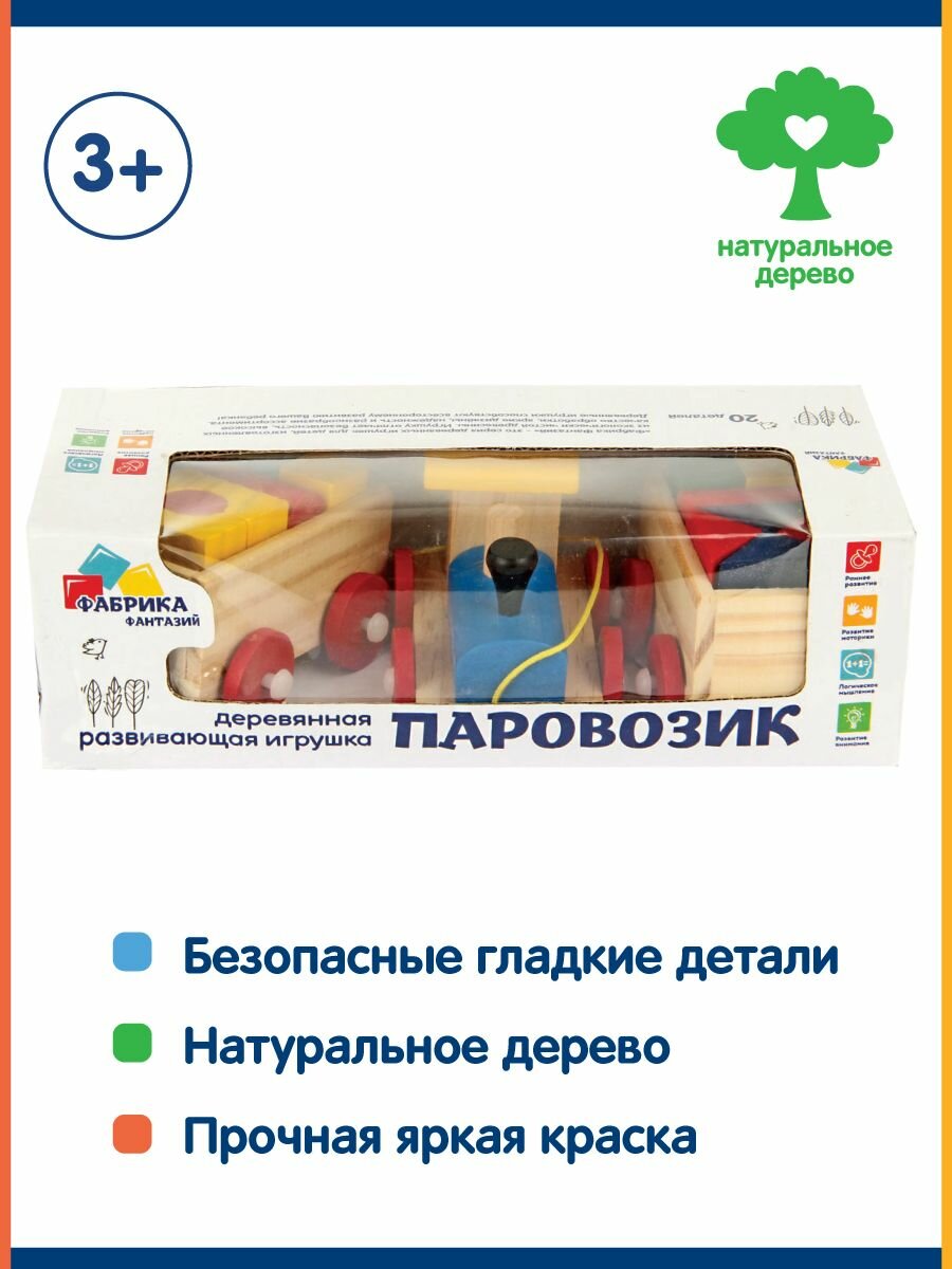 Деревянная игрушка Фабрика Фантазий 42261 паровозик с фигурами интересное: