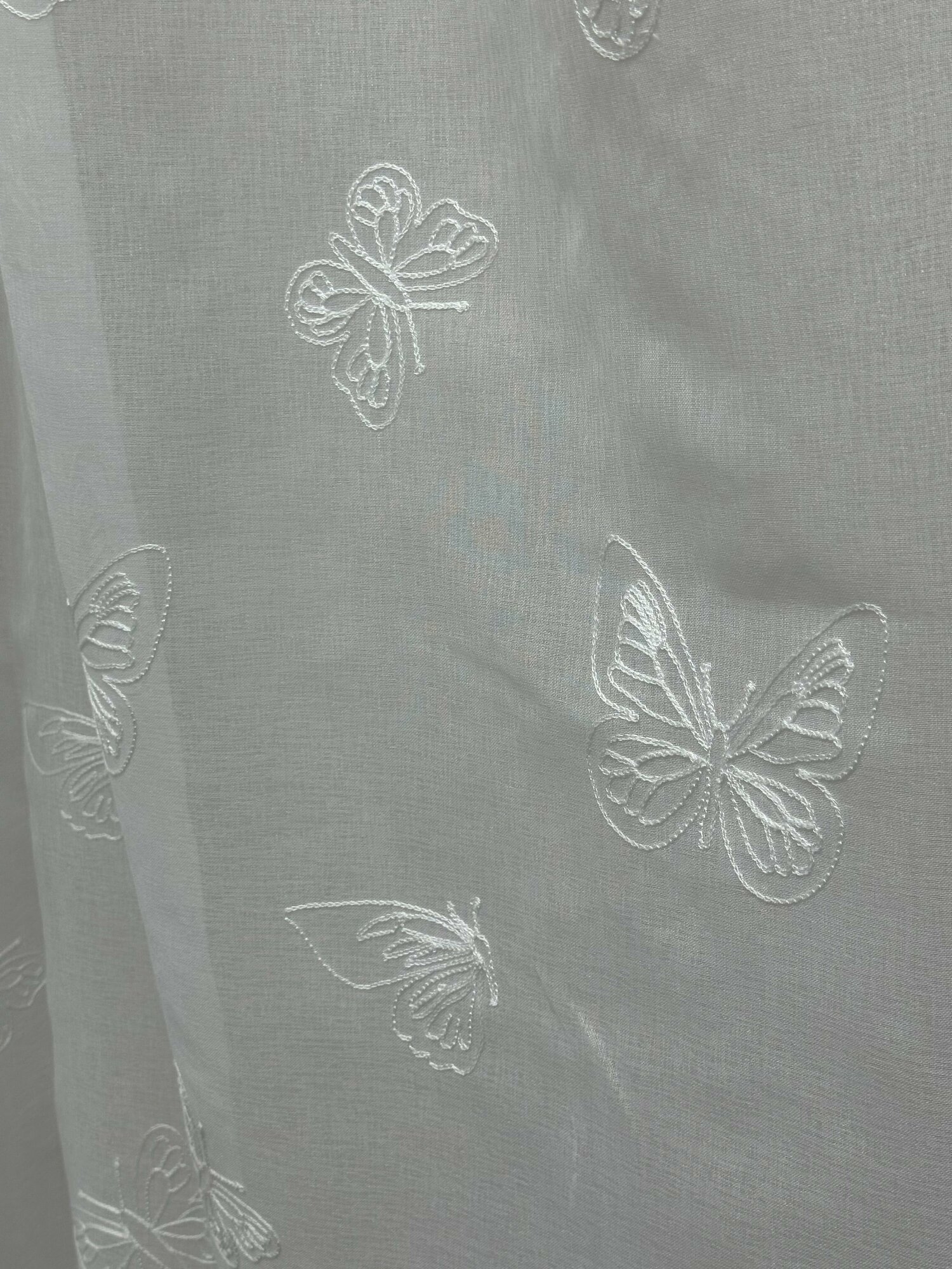 Купить Тюль Батист Лён Вышивка белые Бабочки 600*280