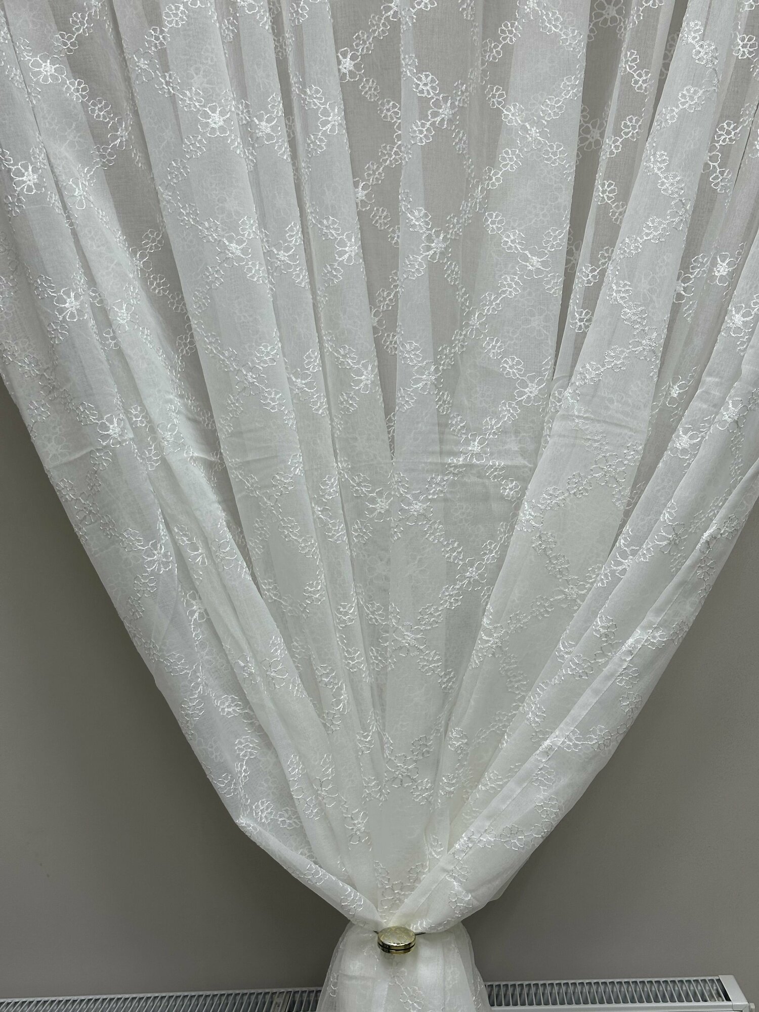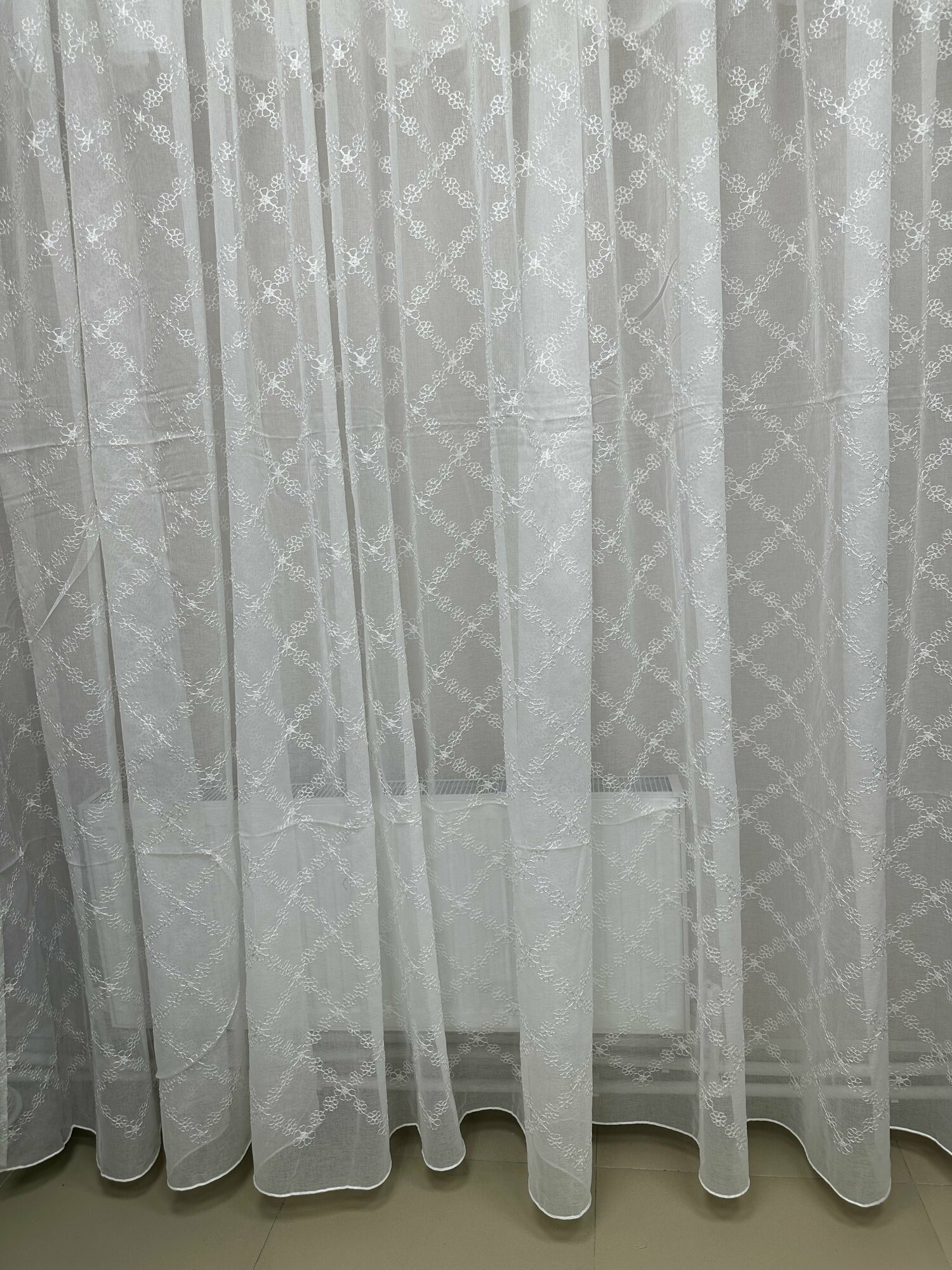 Купить Тюль Батист Лён Вышивка Ромбик Цветок 400*250