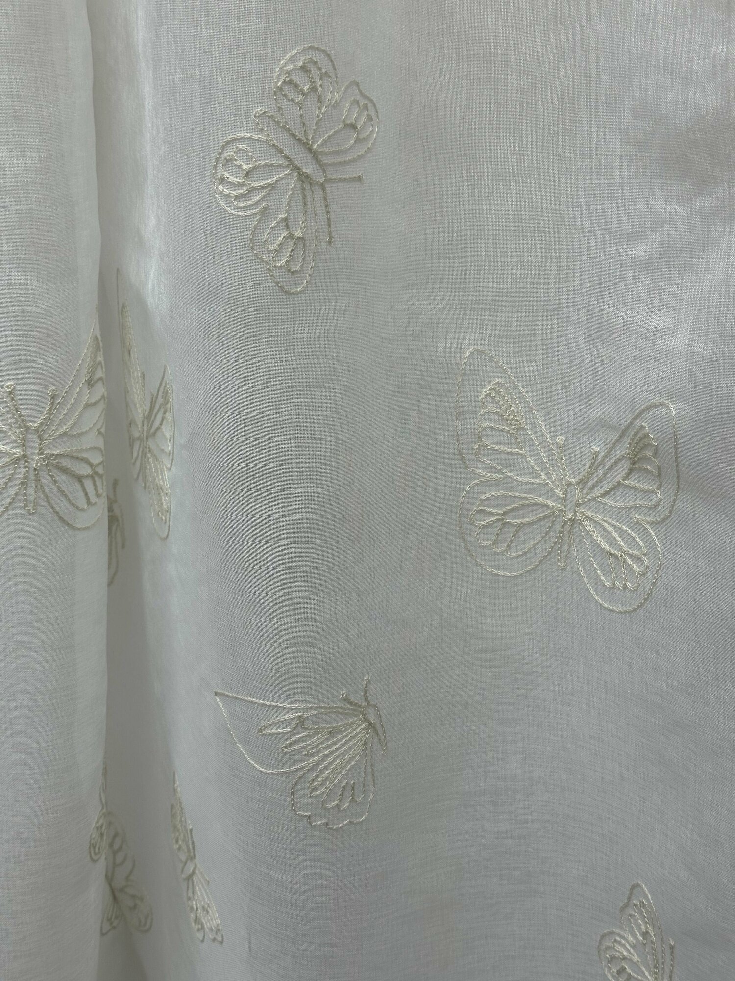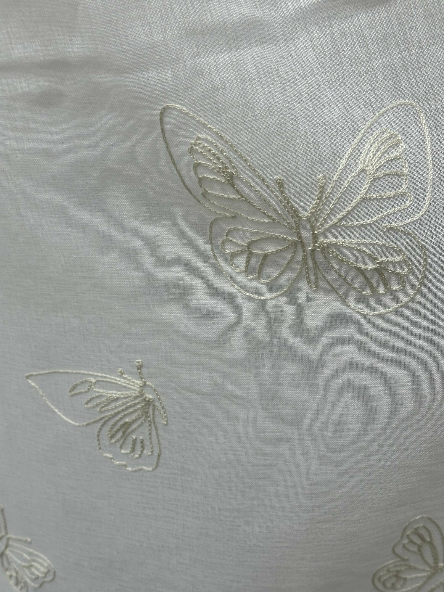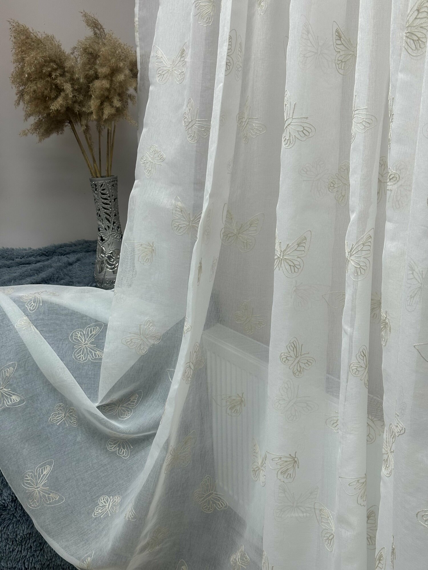 Тюль Батист Лён Вышивка белые Бабочки 600*290