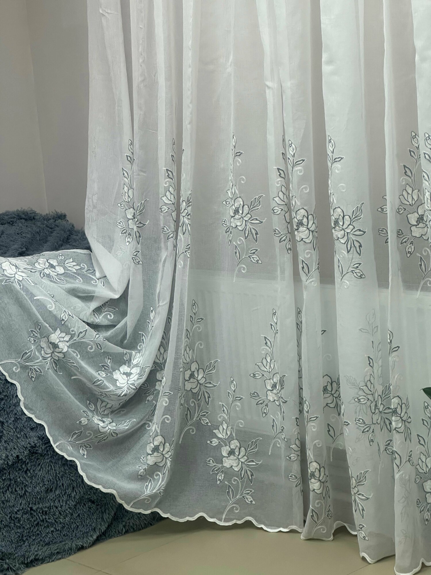 Тюль Батист Лён Вышивка Серая Букет 300*260