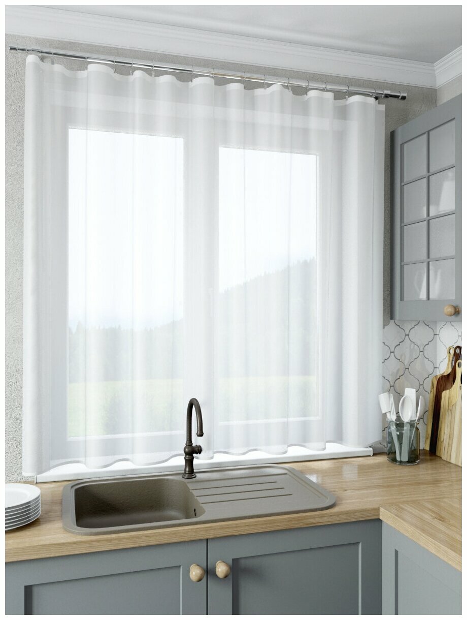 Шторы тюль для кухни короткие Sola "Лайма", белый