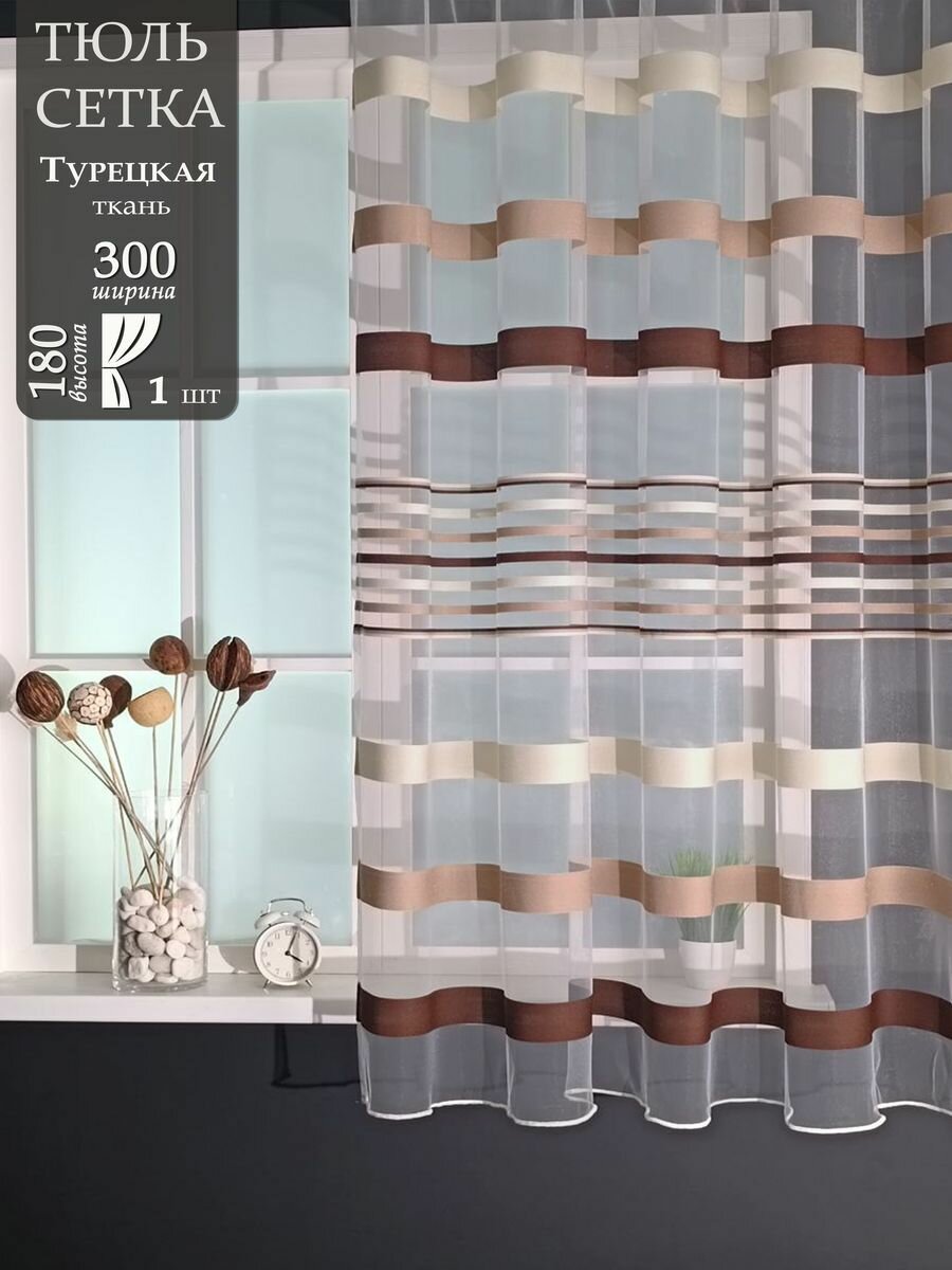 Тюль для комнаты и кухни высота 180 см, ширина 300 см, крепление - Лента. интересное:
