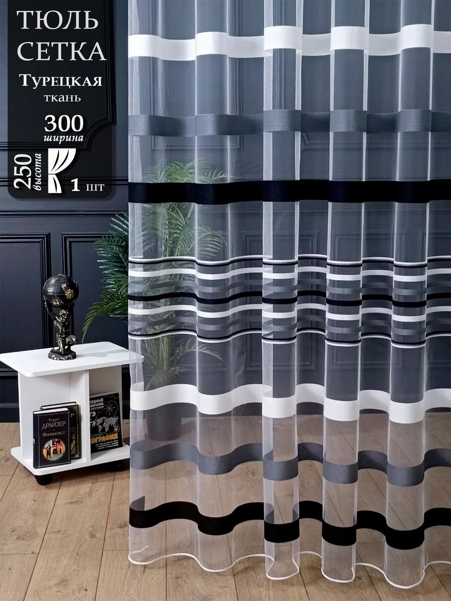 Тюль для комнаты и кухни высота 250 см, ширина 300 см, крепление - Лента. интересное: