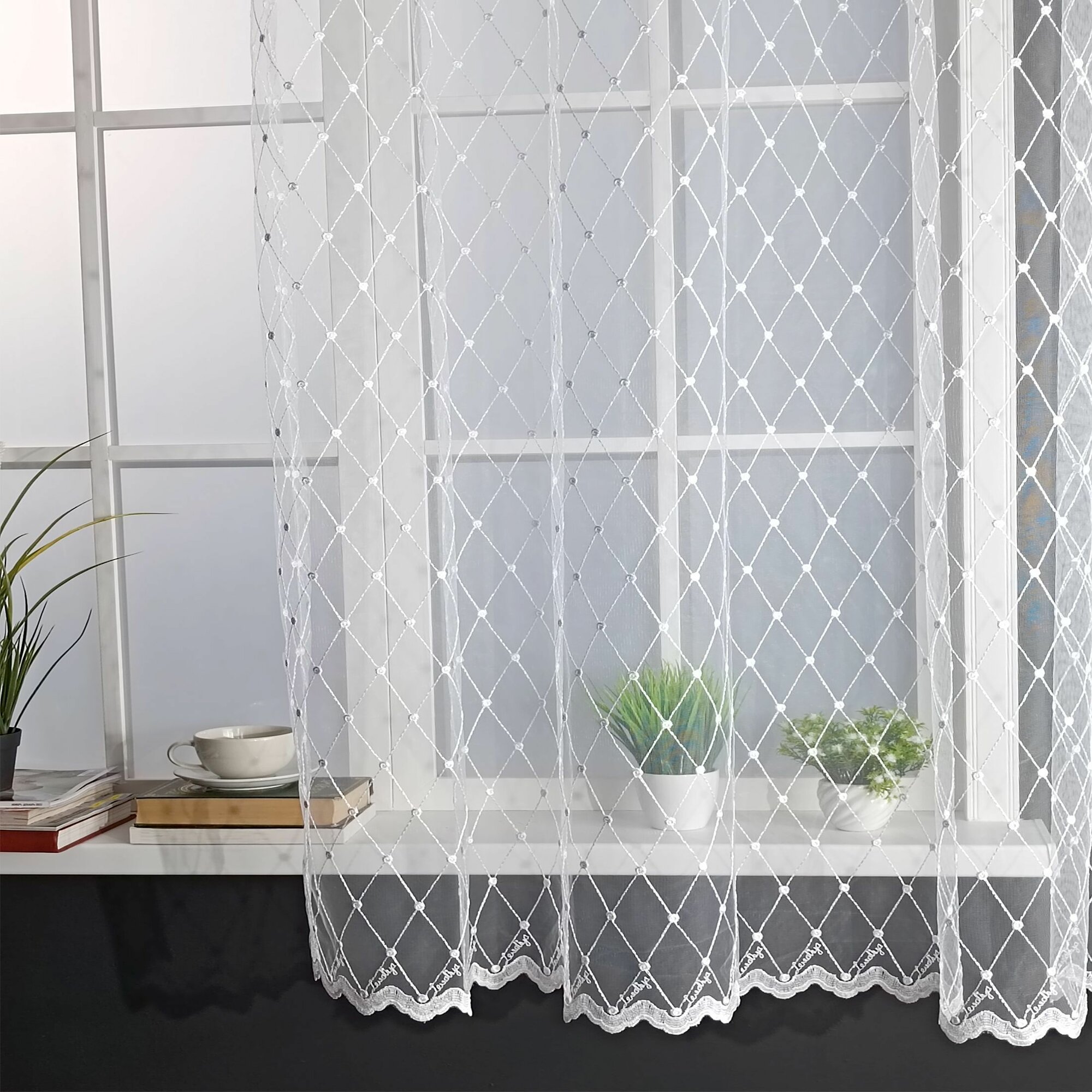 Тюль для комнаты и кухни с вышивкой высота 180 см, ширина 300 см, крепление-лента, цвет-белый. интересное: