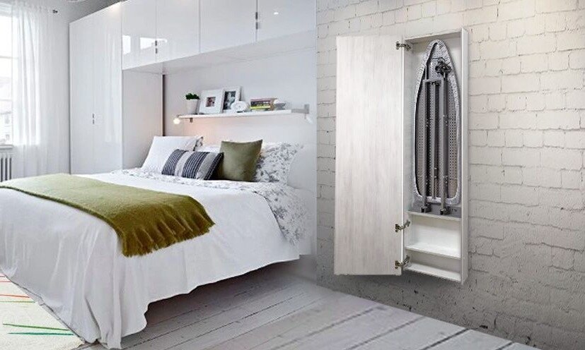 Встраиваемая гладильная доска Табула с Зеркалом Беленый Дуб (распашная, открывание налево) интересное: