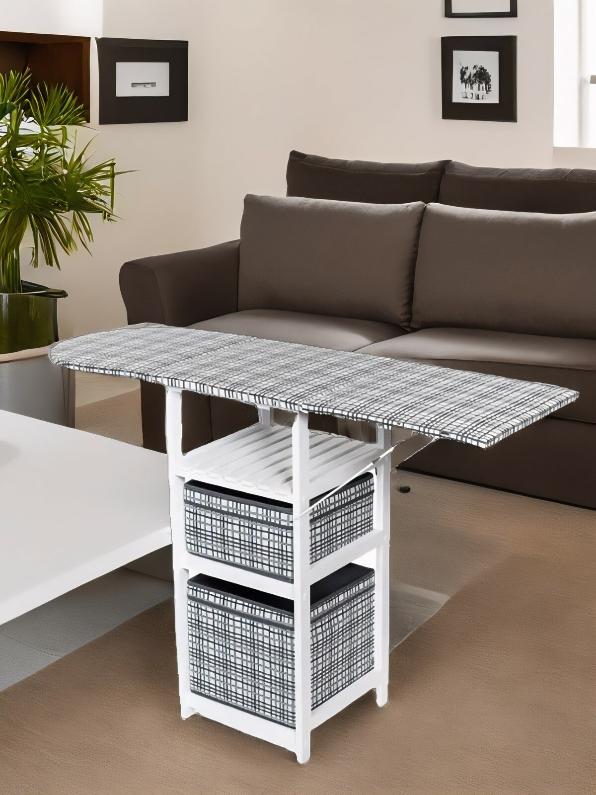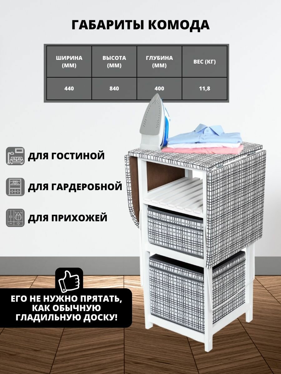 Комод гладильная доска с ящиками из массива, гладильный комод (тип 1) ткань 16 (белый)