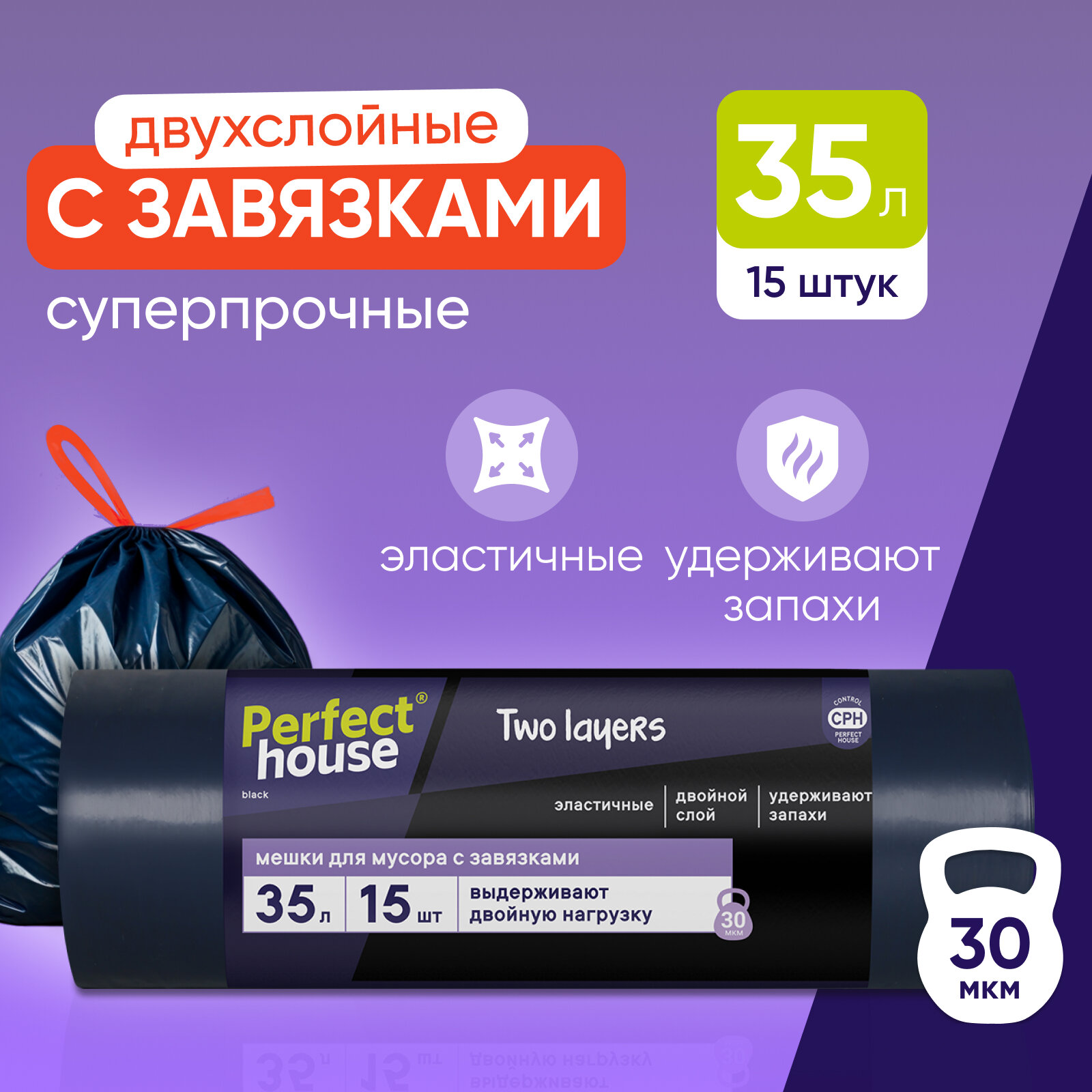 Мешки для мусора Perfect House Two Layers, 35 л, 15 шт, с завязками, 30 мкм