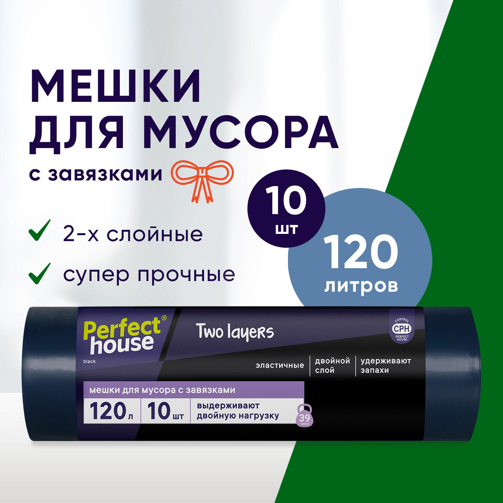 Купить Мешки для мусора Perfect House Two Layers Strong, плотные с завязками в рулоне 120 литров, 10 шт