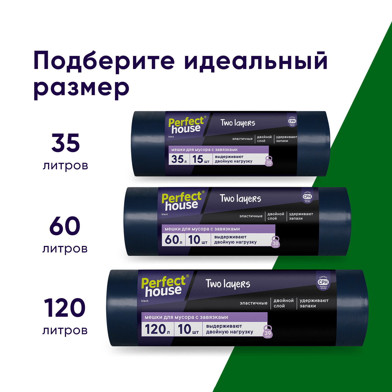 Мешки для мусора Perfect House Two Layers, 35 л, 15 шт, с завязками, 30 мкм