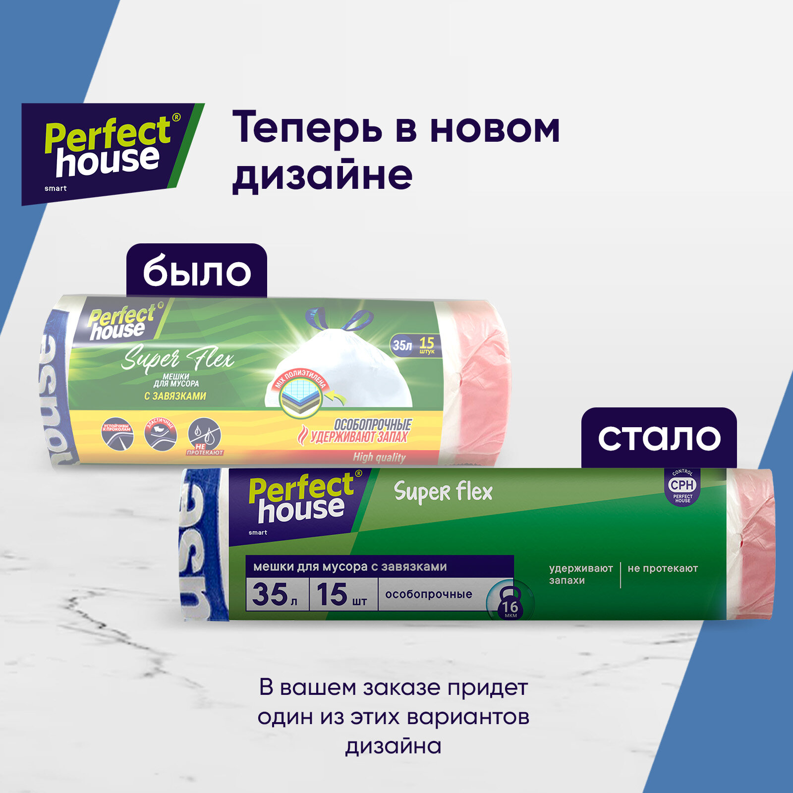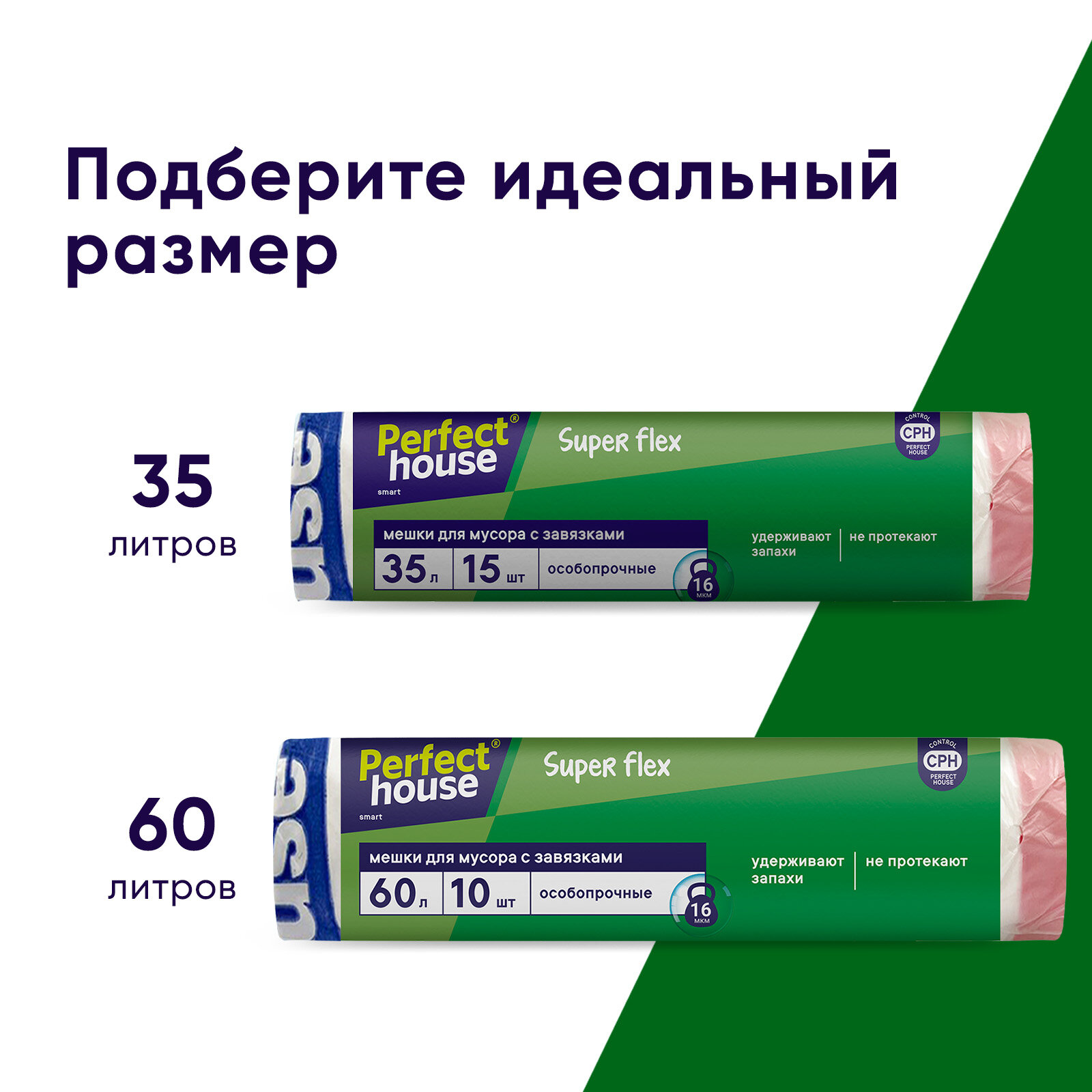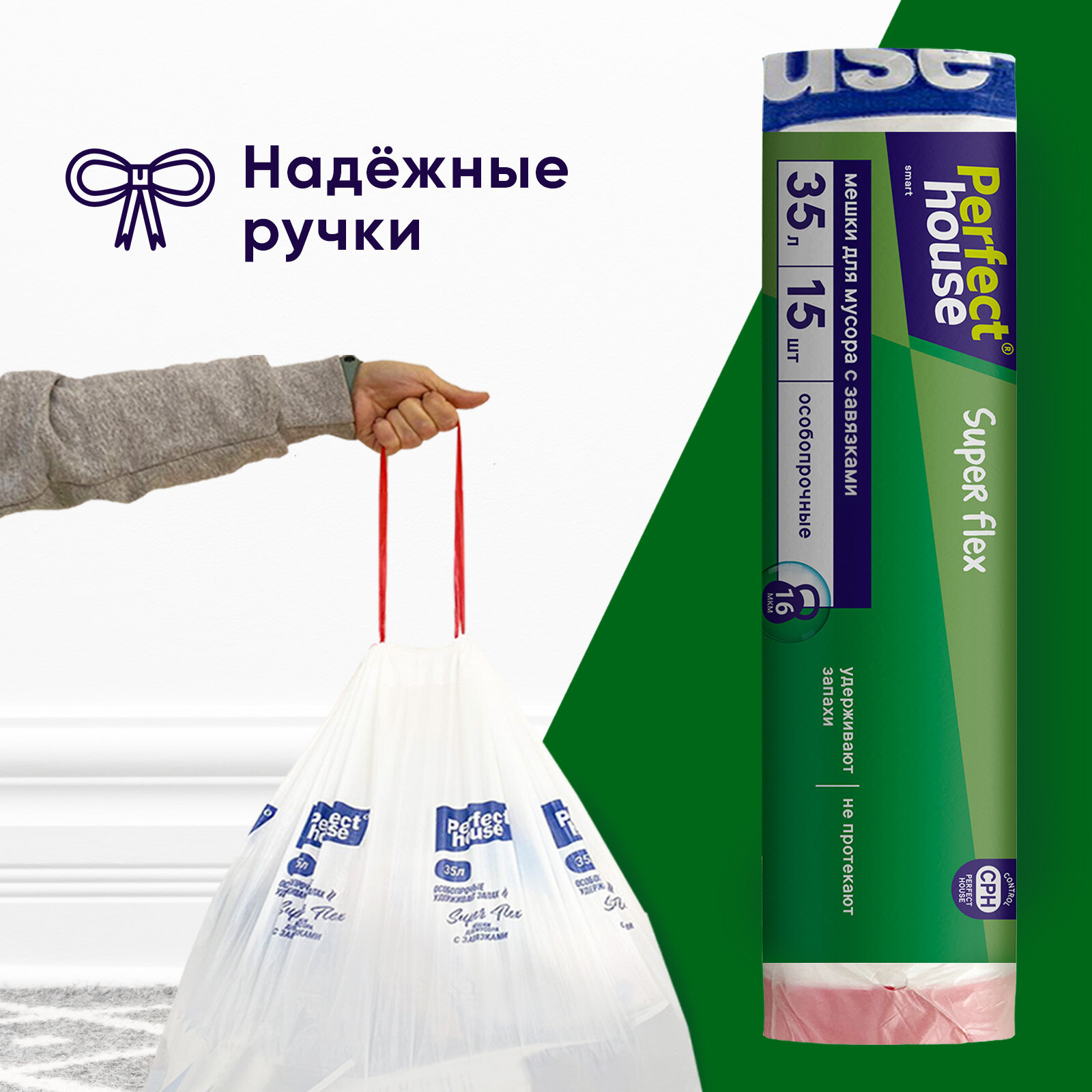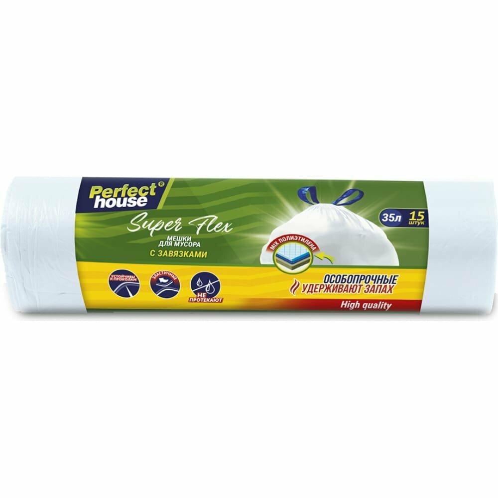 Купить Мешки для мусора Perfect House Super Flex, 35 л, 15 шт, с завязками, 16 мкм