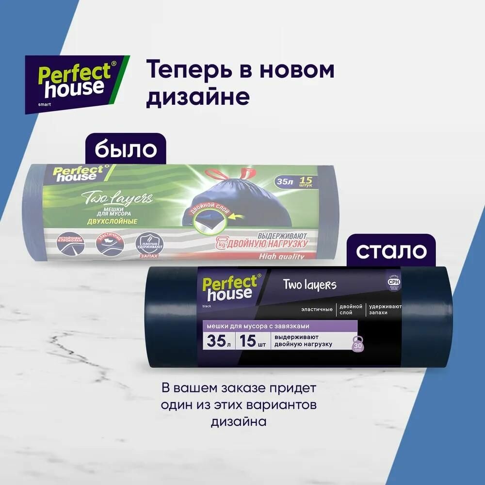 Купить Мешки для мусора Perfect House Two Layers, 35 л, 15 шт, с завязками, 30 мкм