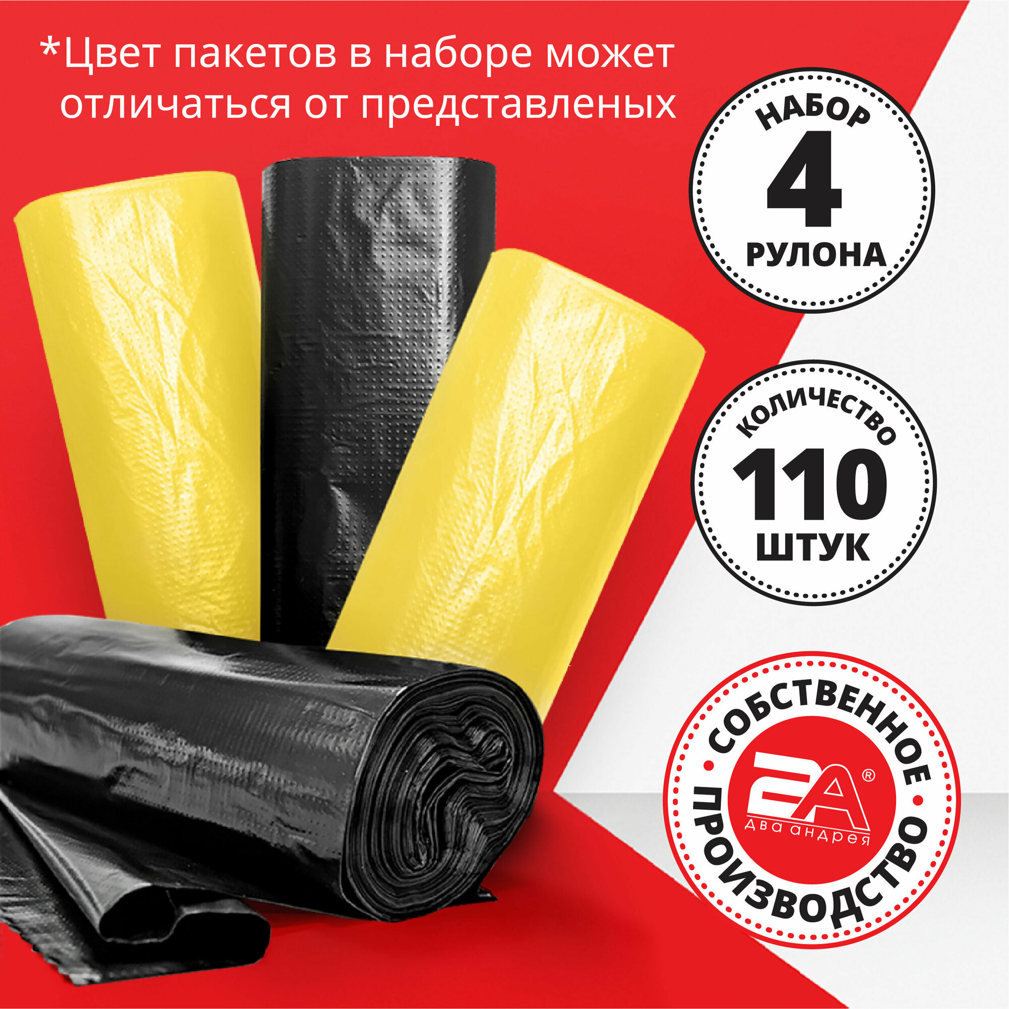 Мусорные пакеты Два Андрея, сверхпрочные, полиэтилен, 30л, 4 рул, 110шт