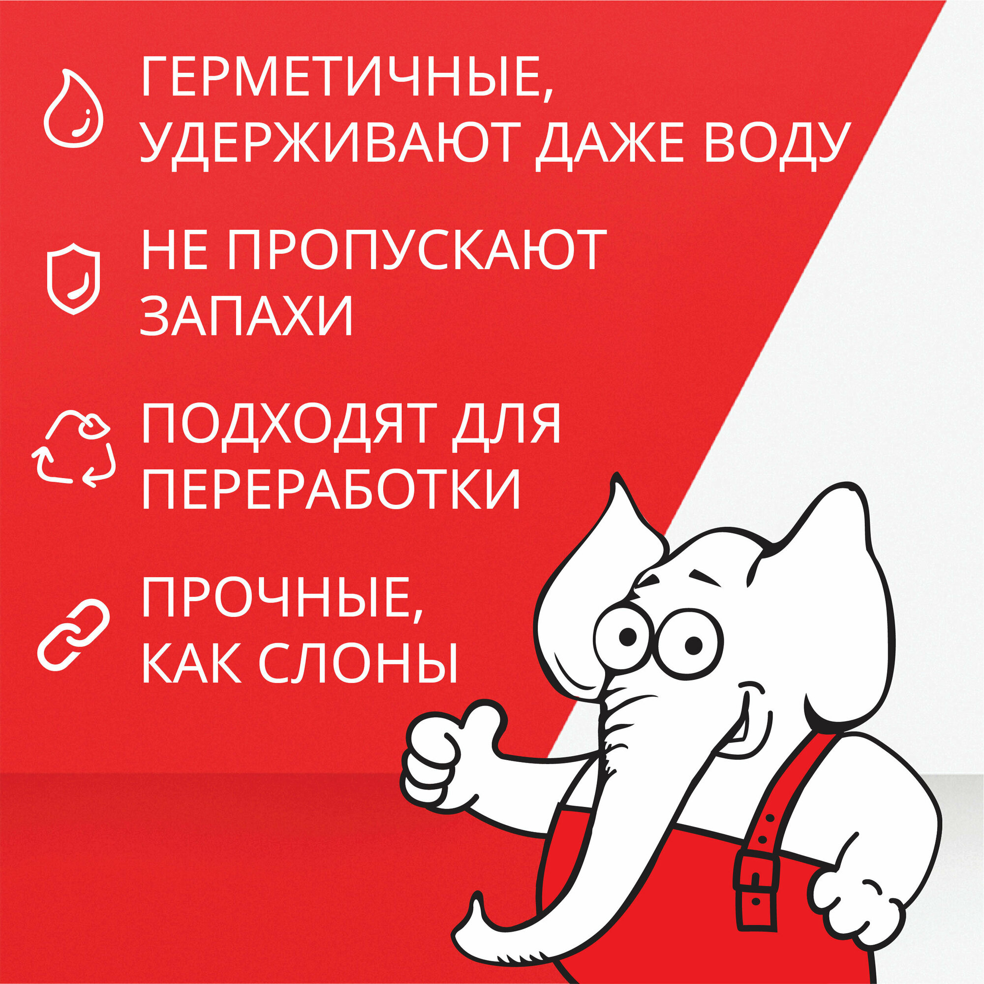 Сверхпрочные мусорные мешки "Слоны" 60л в рулонах цветные