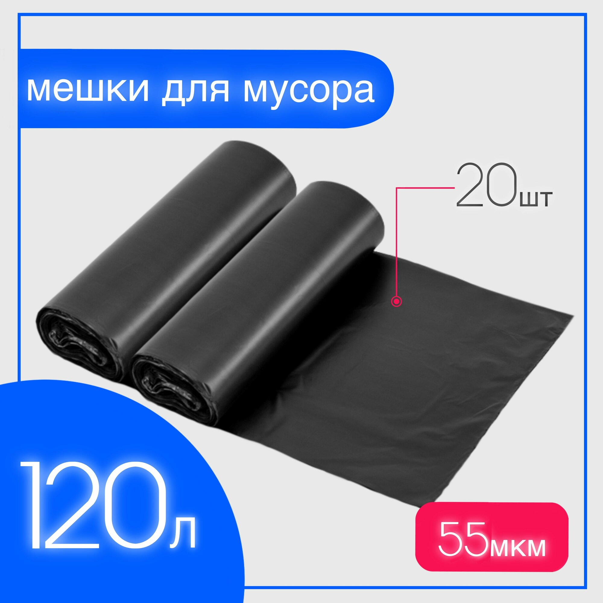Купить Мешки для мусора 120 л прочные, 20шт, 55 мкм, ПВД, пакеты не просвечивают, плотные