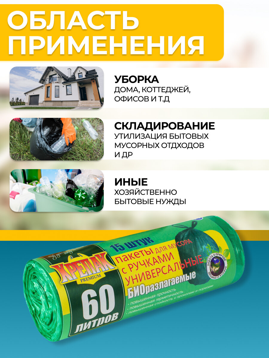 Мешки для мусора с ручками в рулоне Крепак биоразлагаемые 60 л, 15 шт интересное: