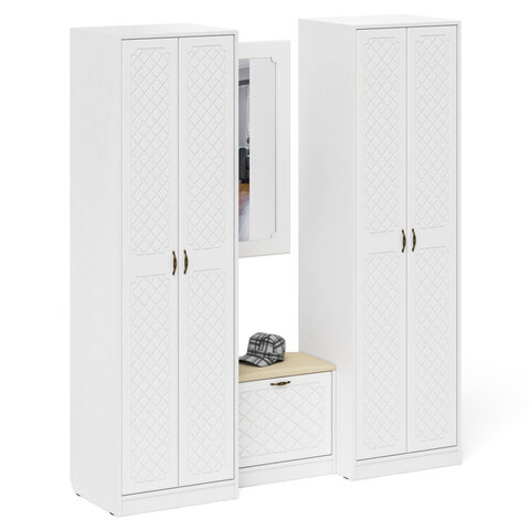 Мебель для прихожей П-6 № 18, цвет белая шагрень/фасады МДФ белое дерево фрезеровка ромб, ШхГхВ 120х50х210 см., универсальная сборка