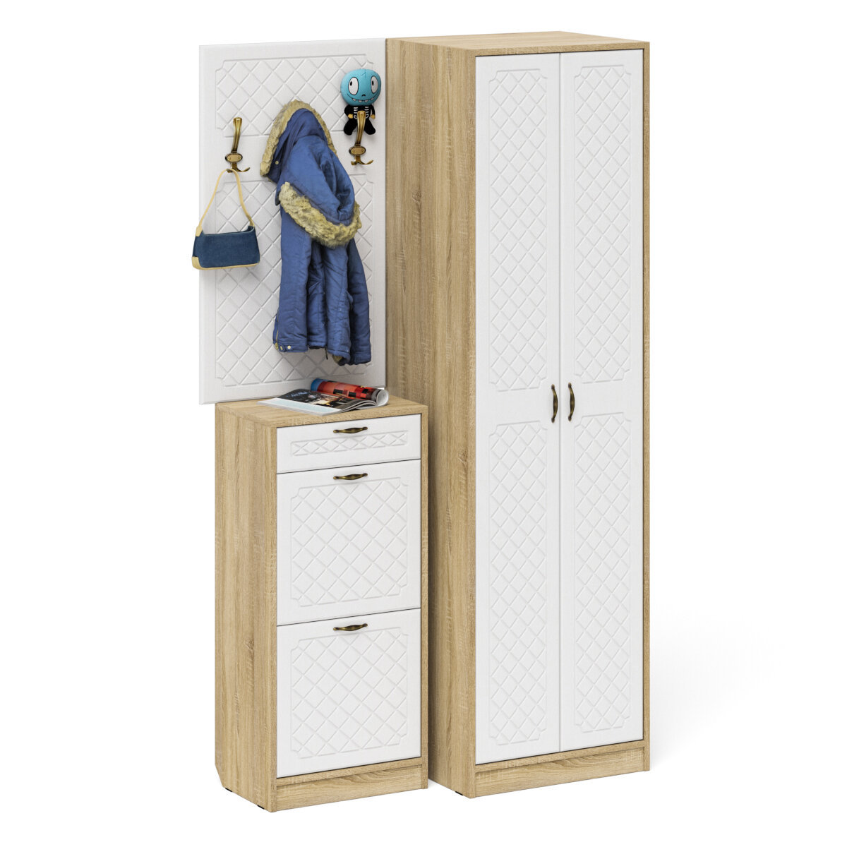 Прихожая Мебельный двор П-6 Компоновка № 18 дуб сонома/фасады МДФ белое дерево фрезеровка ромб (1025041)