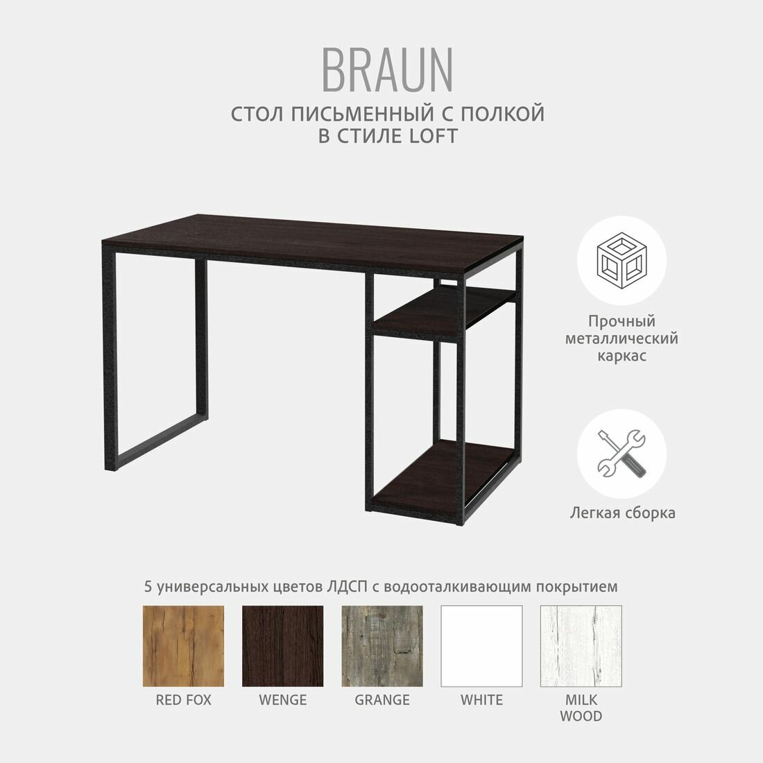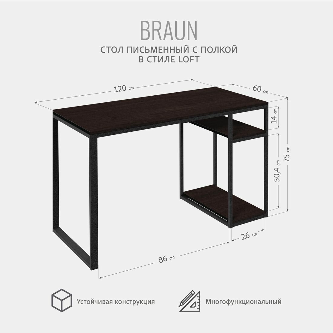 СохранитьСтол письменный с полкой BRAUN loft, темно-коричневый, компьютерный, офисный, 120x60x75 см, гростат интересное: