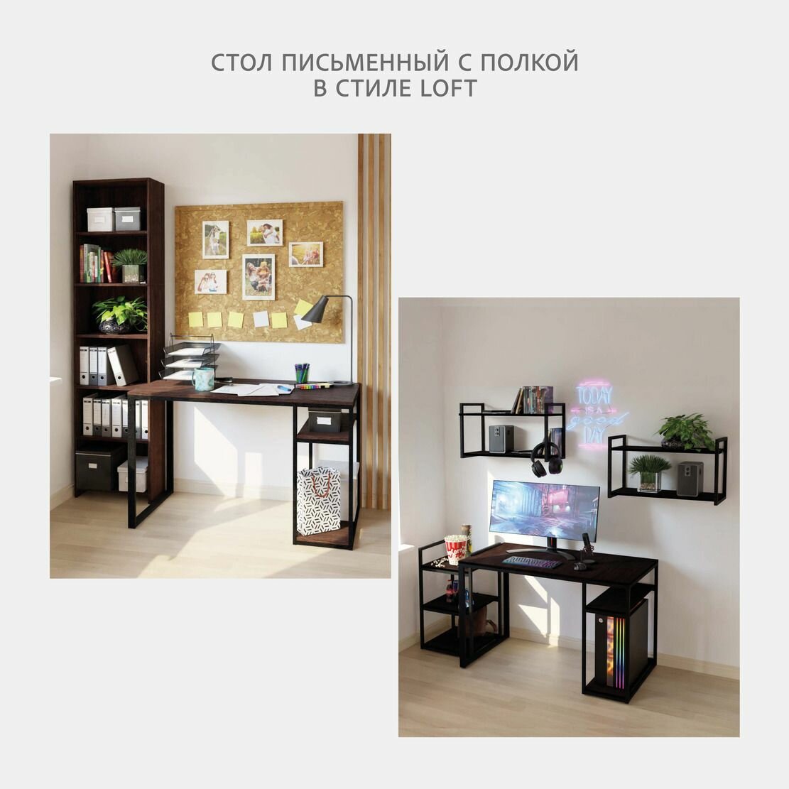 Стол письменный с полкой BRAUN loft, коричневый, компьютерный, офисный, 120x60x75 см, гростат