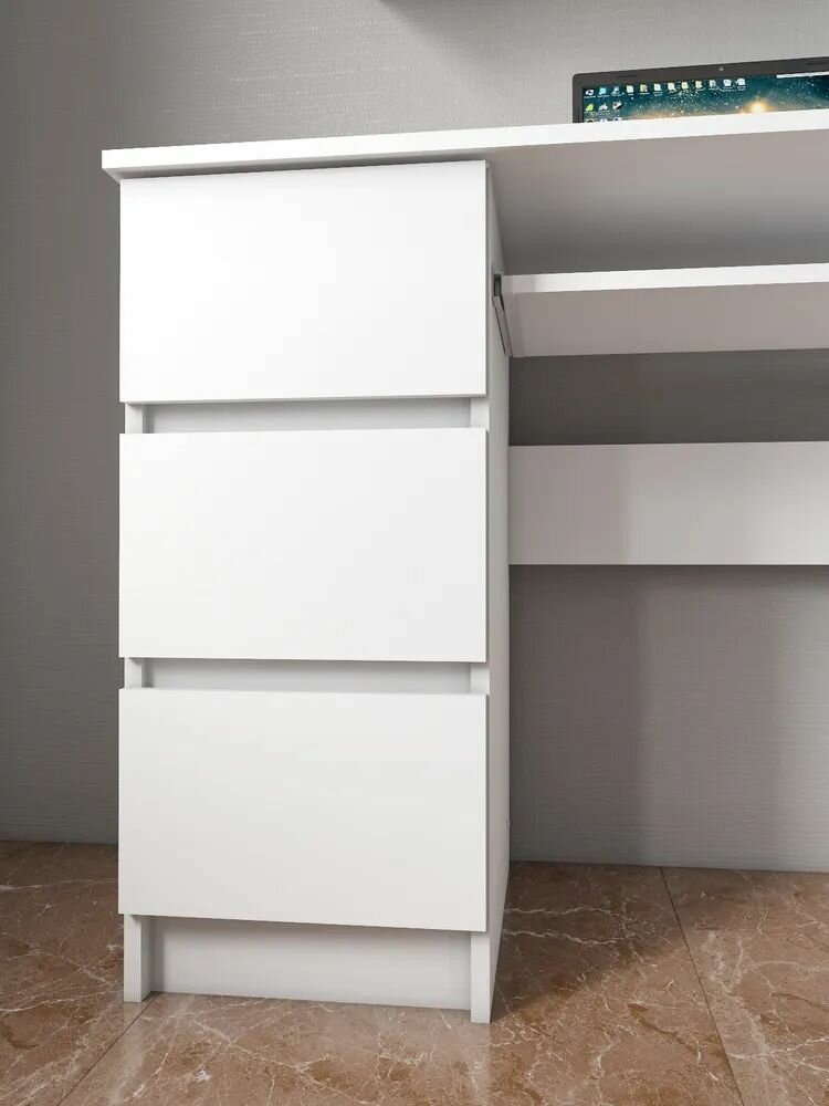 МС Мори Стол МС-6 правый Белый (компьютерный, письменный, с ящиками, для школьника, в офис)