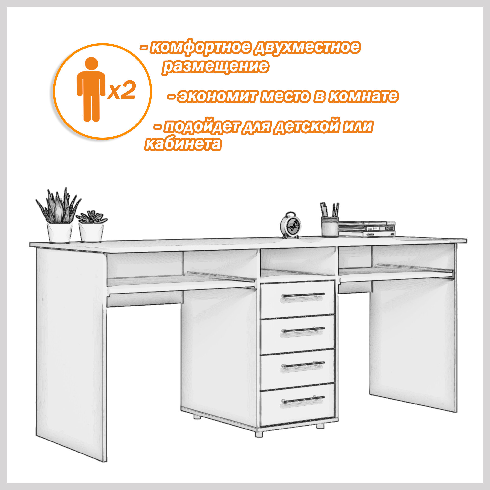 Письменный стол двойной Есэндвич Лаворо, 180x60х75 см (Анкор белый)