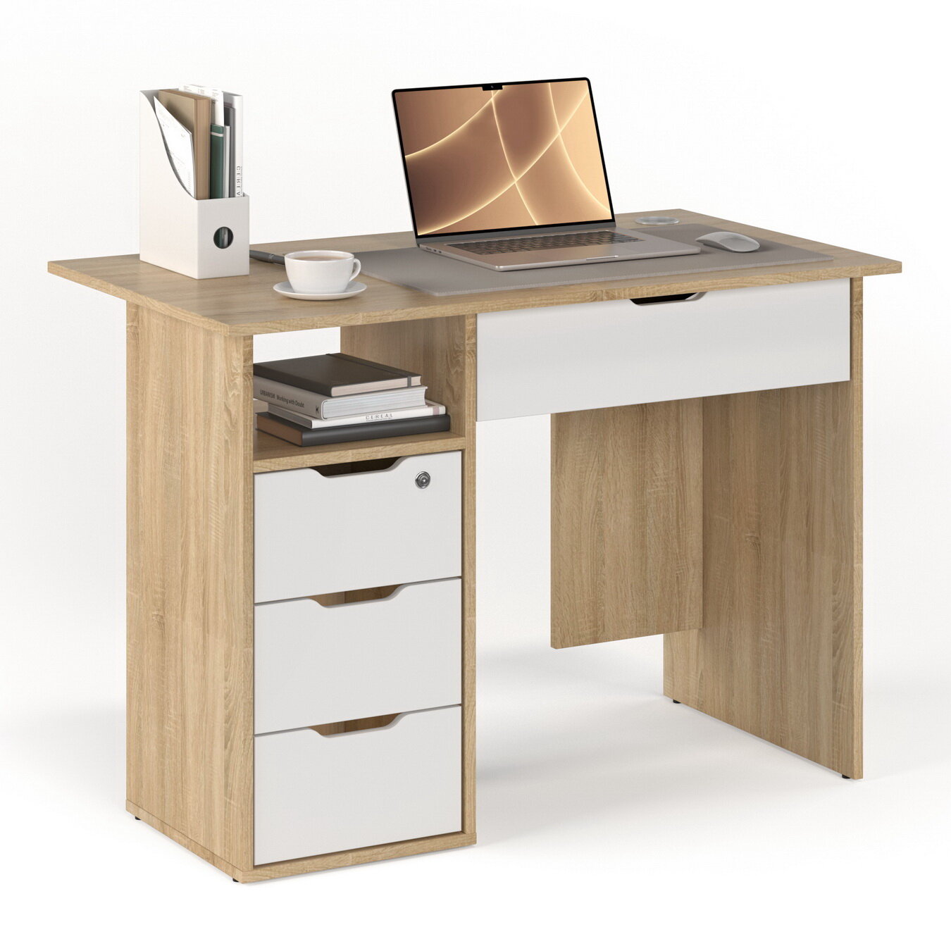 Стол письменный БАНГА-53-Я правый дуб сонома-белый