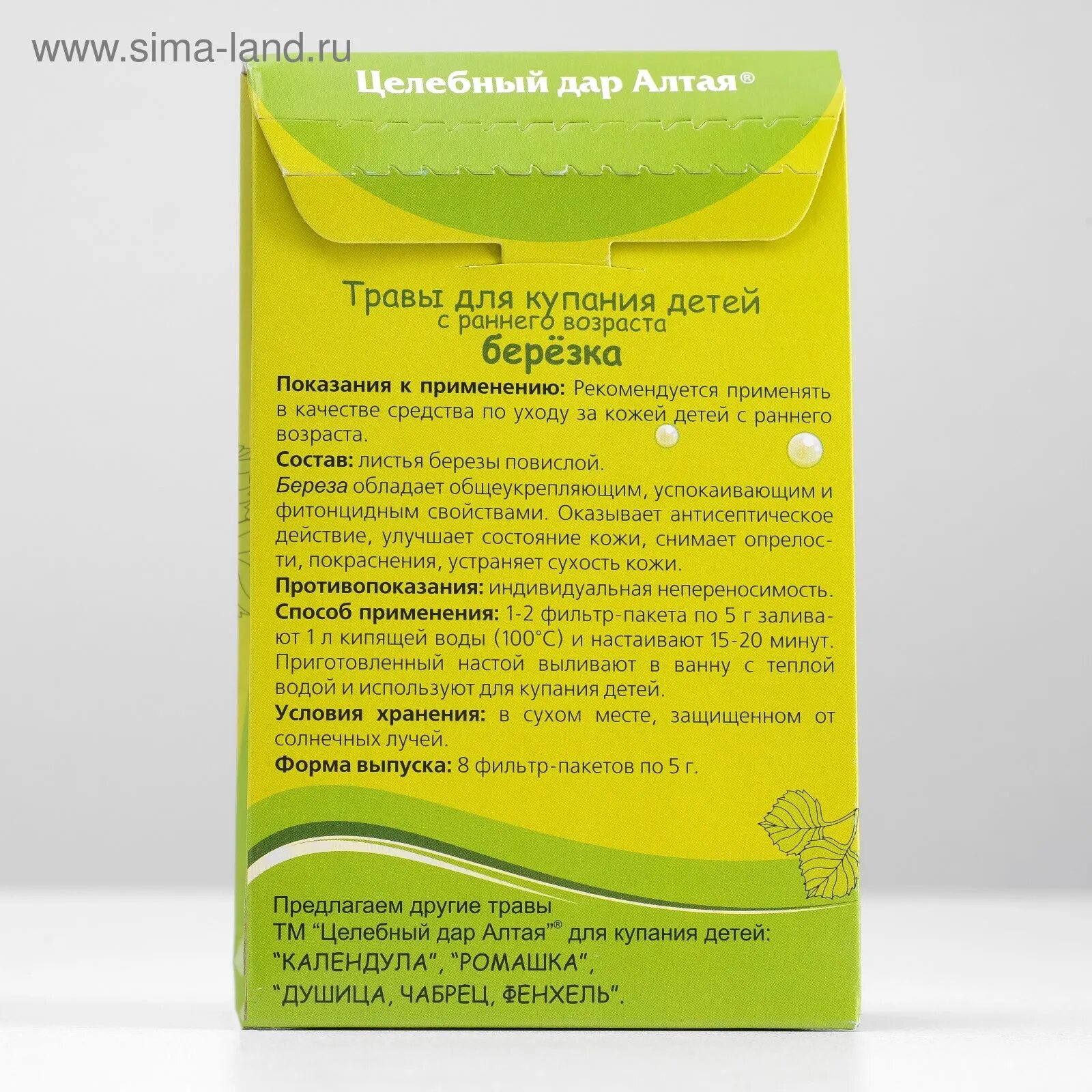 Травы для купания детей с раннего возраста «Берёзка» Целебный Дар Алтая, 8 ф/п по 5 г 4980738 интересное: