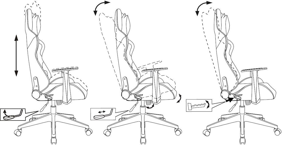 | Регулировка | высоты поясничного упора / высоты сиденья / глубины сиденья / наклона спинки |