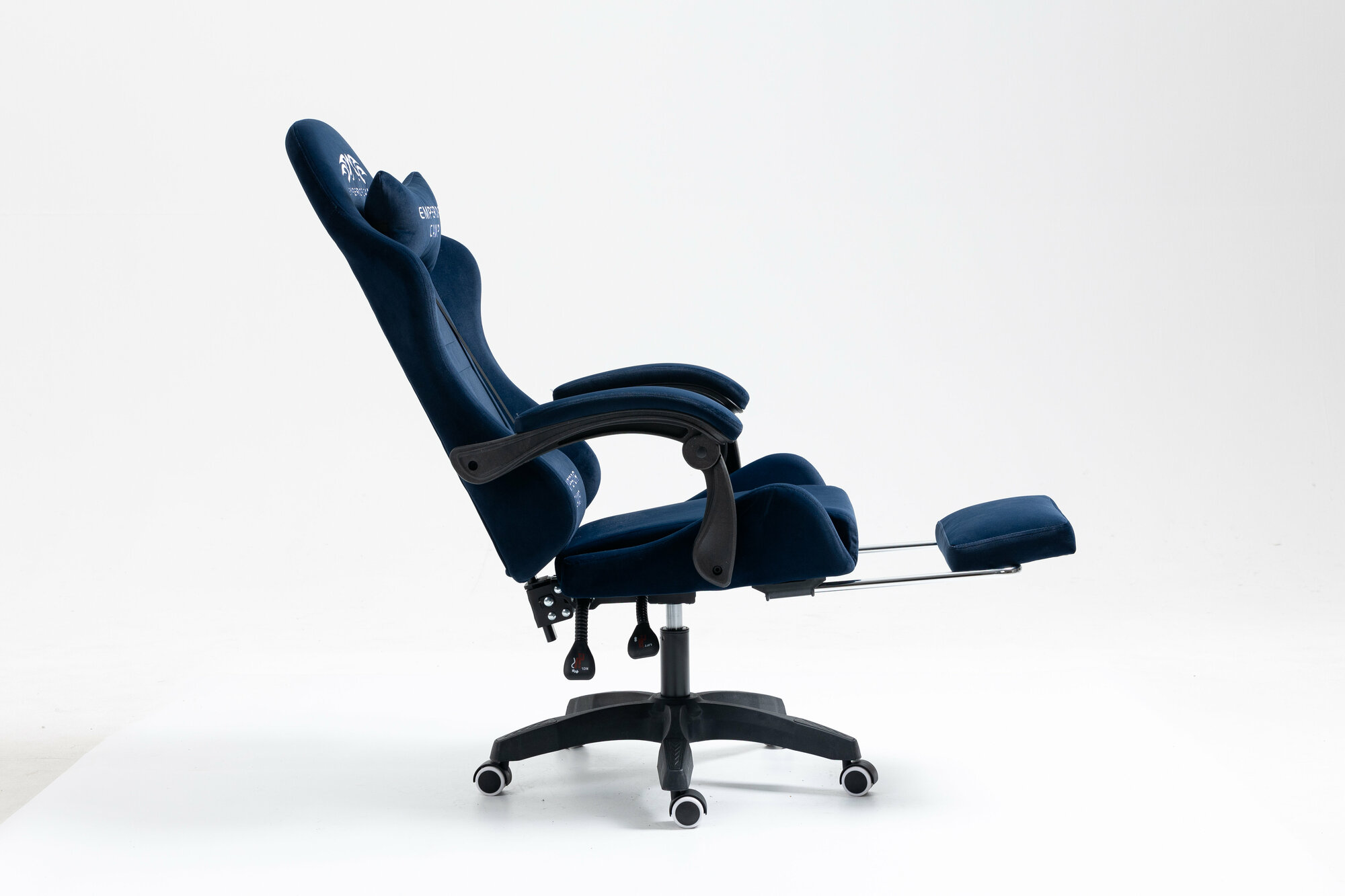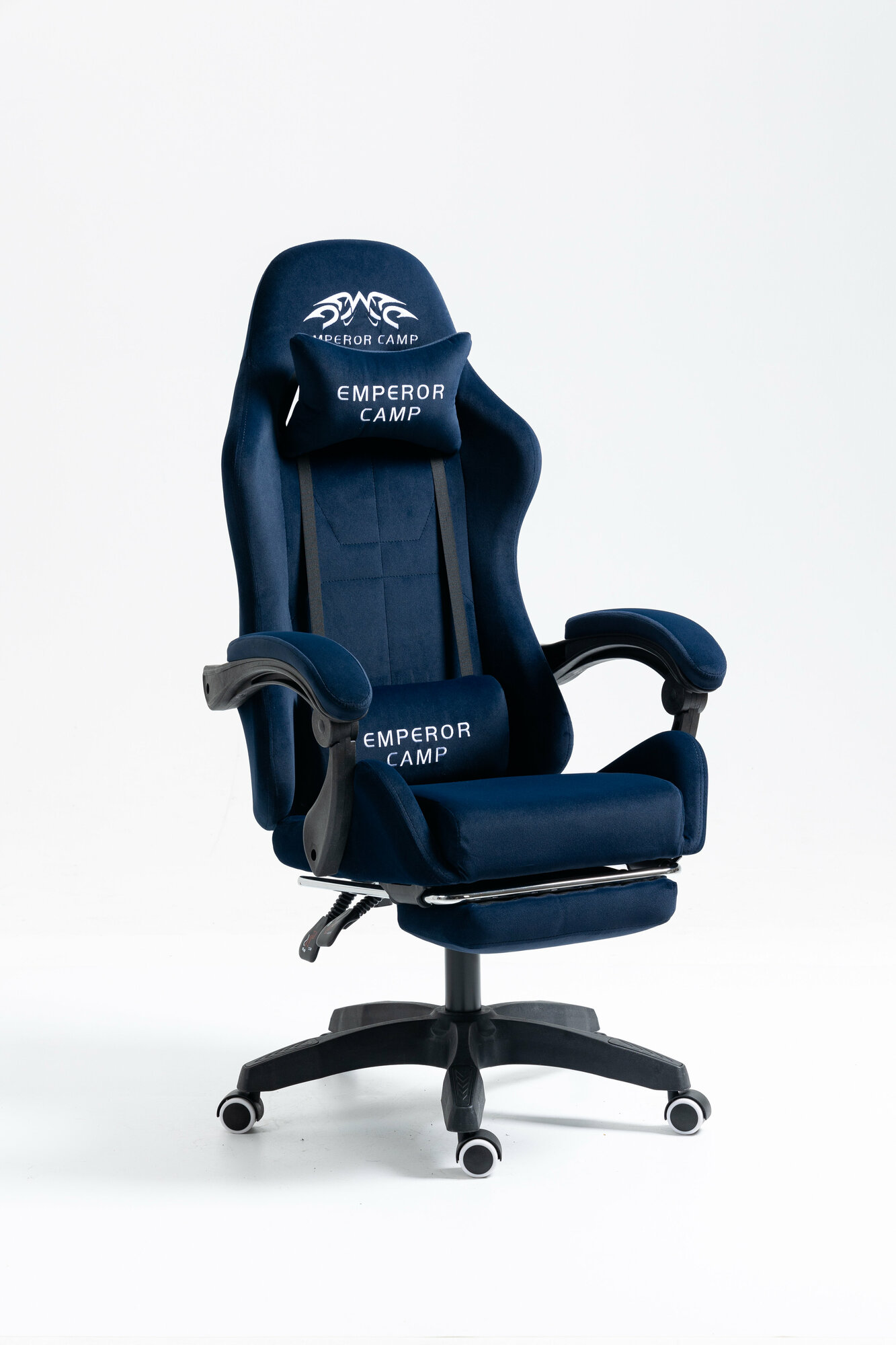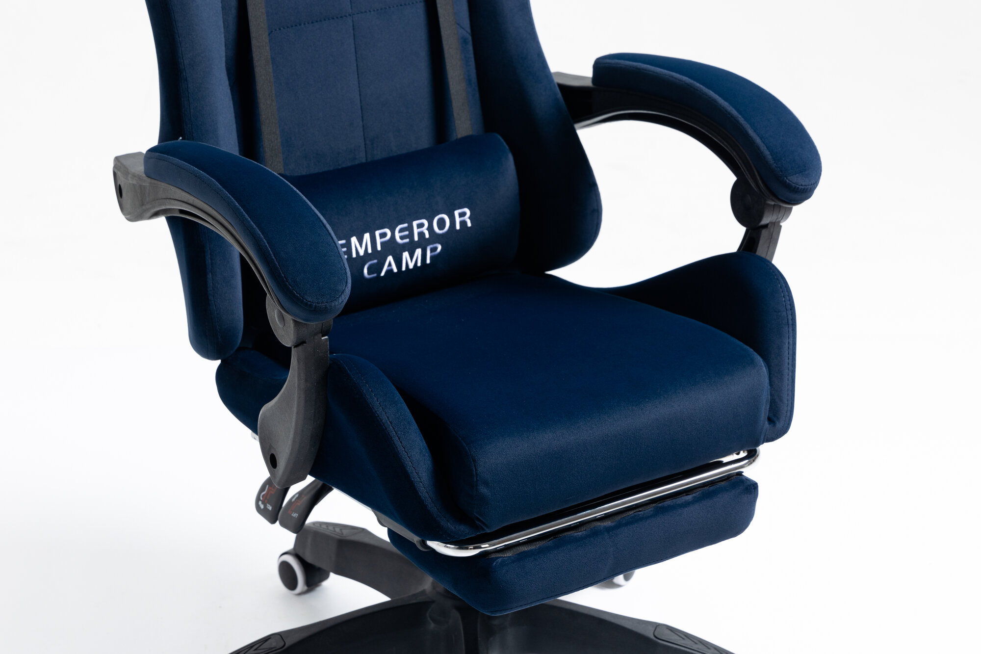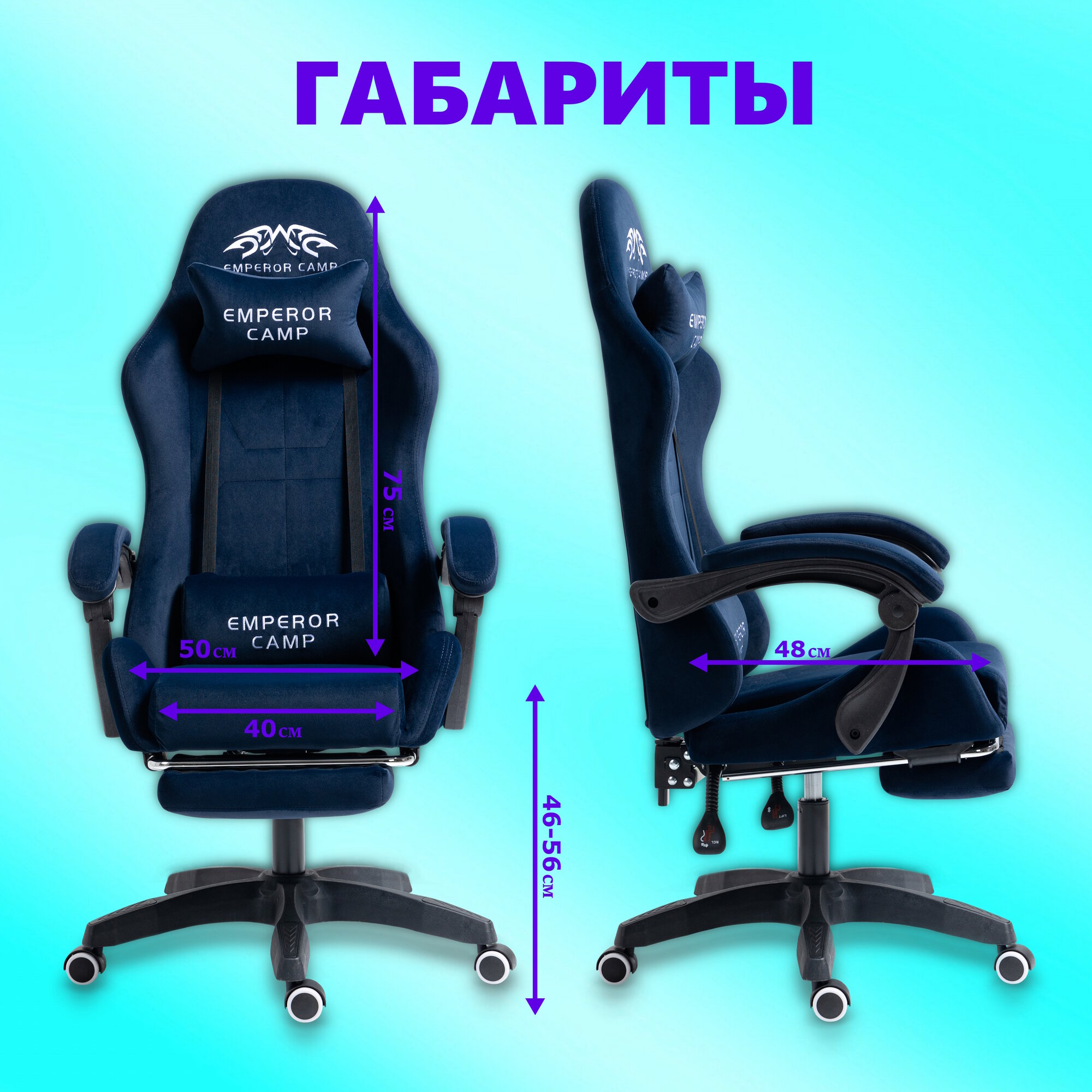 Игровое велюровое компьютерное кресло EMPEROR CAMP 777, Синее с подставкой для ног интересное: