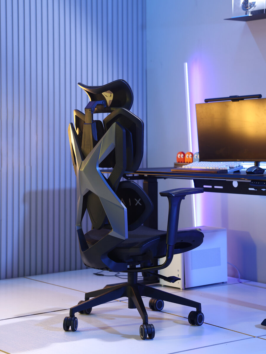 Геймерское компьютерное кресло на колесиках в стиле хай-тек XIAOQI, Черное интересное: