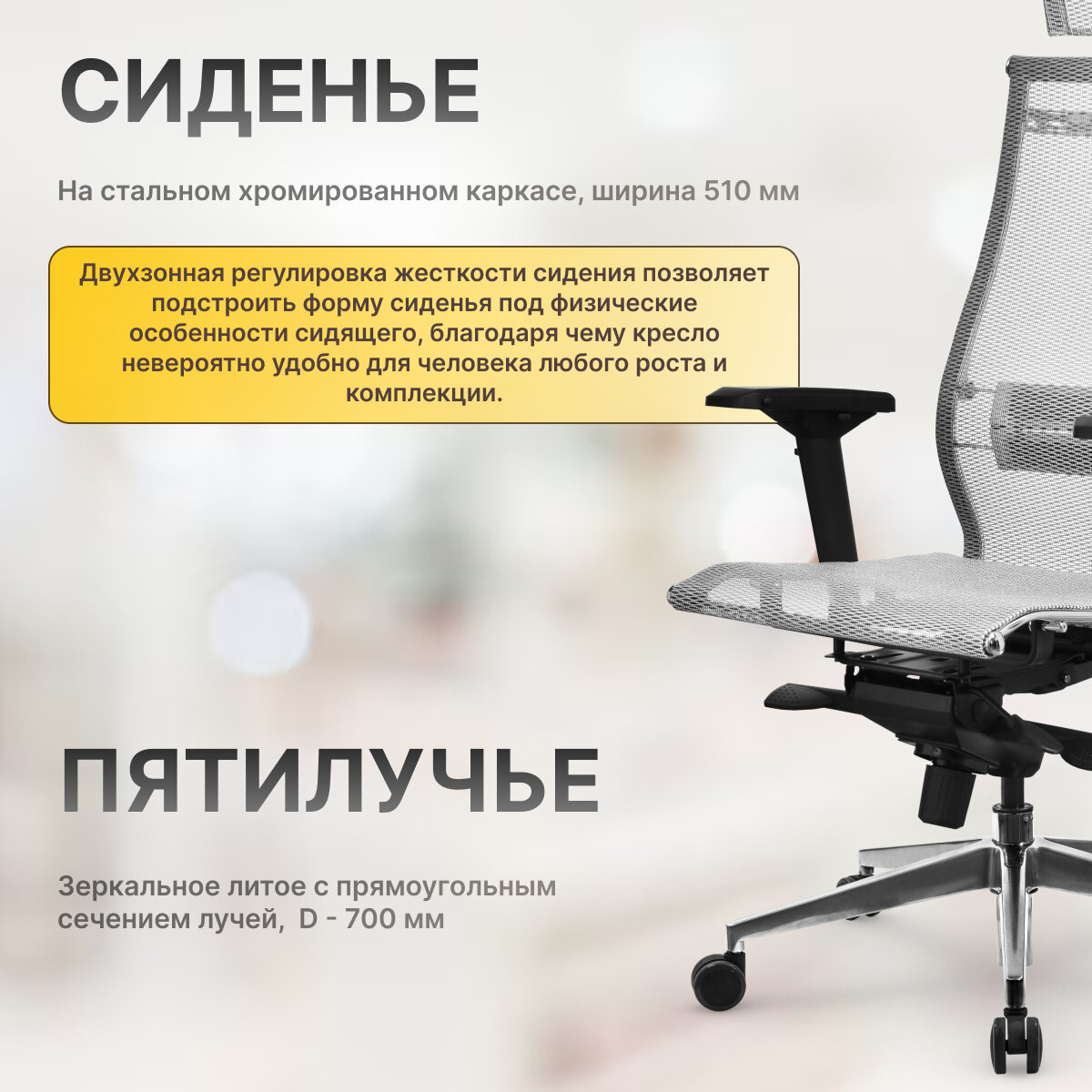 | Регулировка | высоты подголовника / высоты подлокотников / высоты поясничного упора / высоты сиденья / высоты спинки / глубины сиденья / угла наклона подголовника / угла подлокотников |