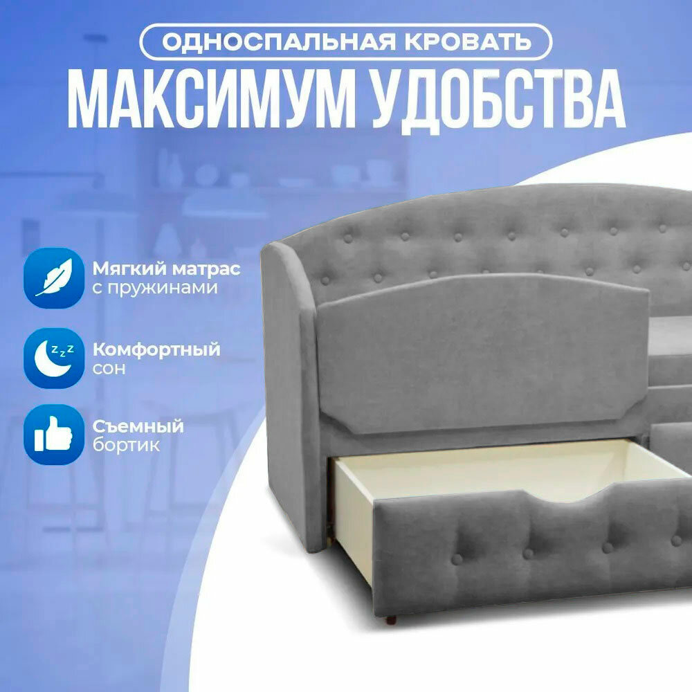 Детская мягкая кровать с ящиками и мягким бортиком, спальное место 80х180, без матраса