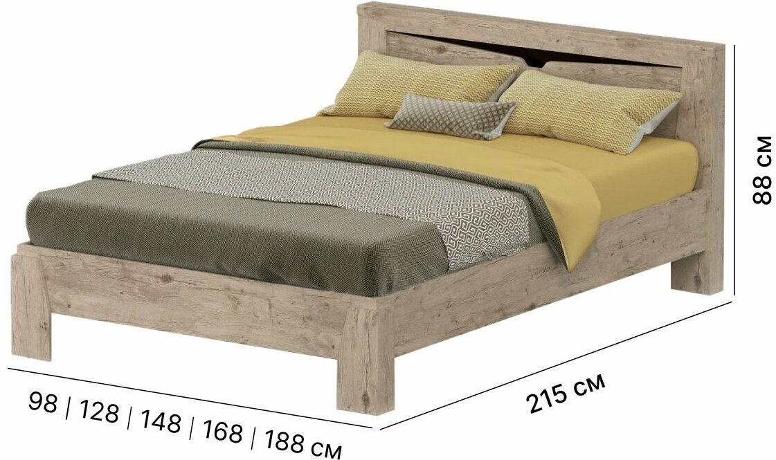 Каркас кровати Hoff Соренто, 140х200 см, цвет дуб бонифаций, без основания и подъемного механизма