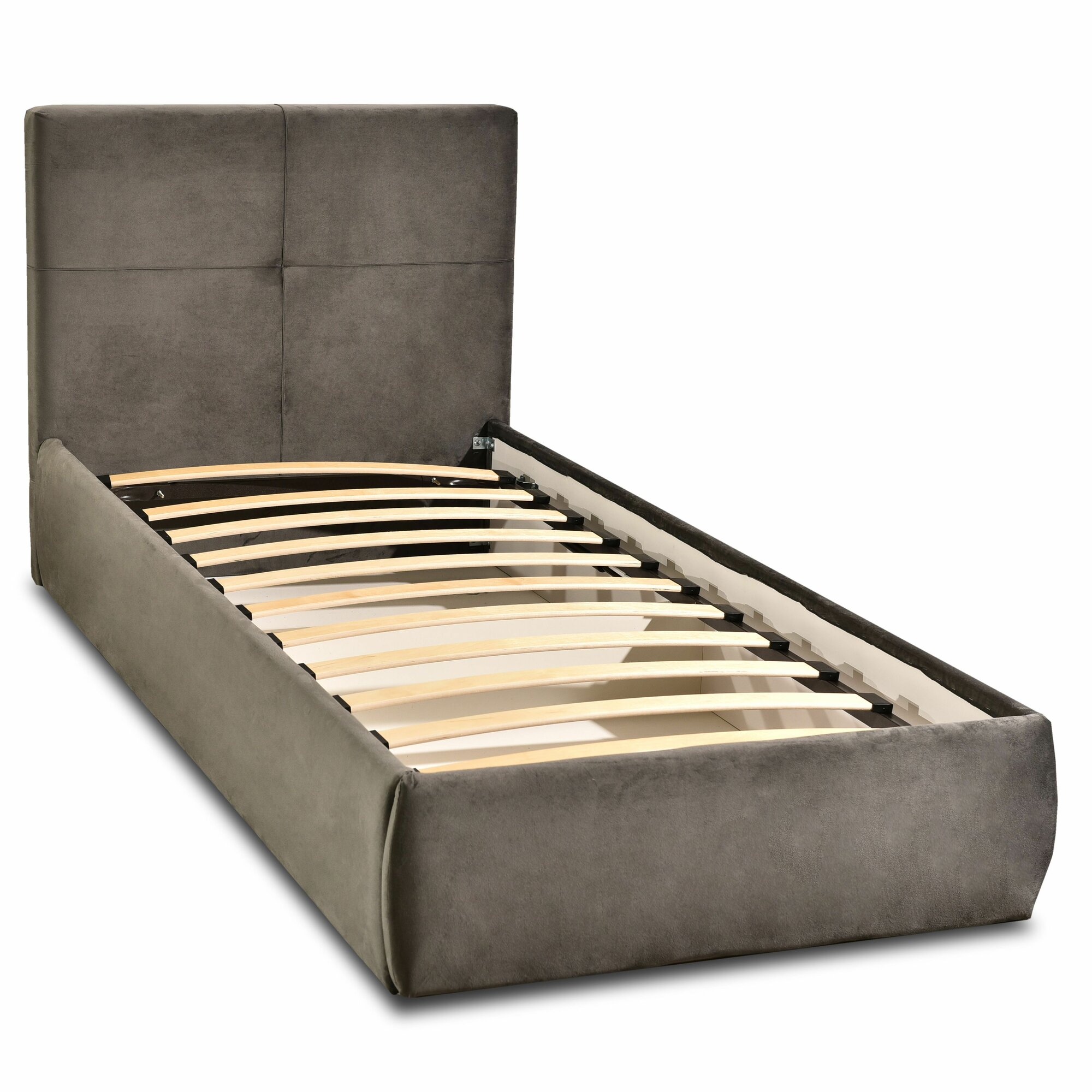Детская односпальная кровать 90х200 см Прима мод.1, подростковая для дома и спальни, бархат серый, АМИ Мебель