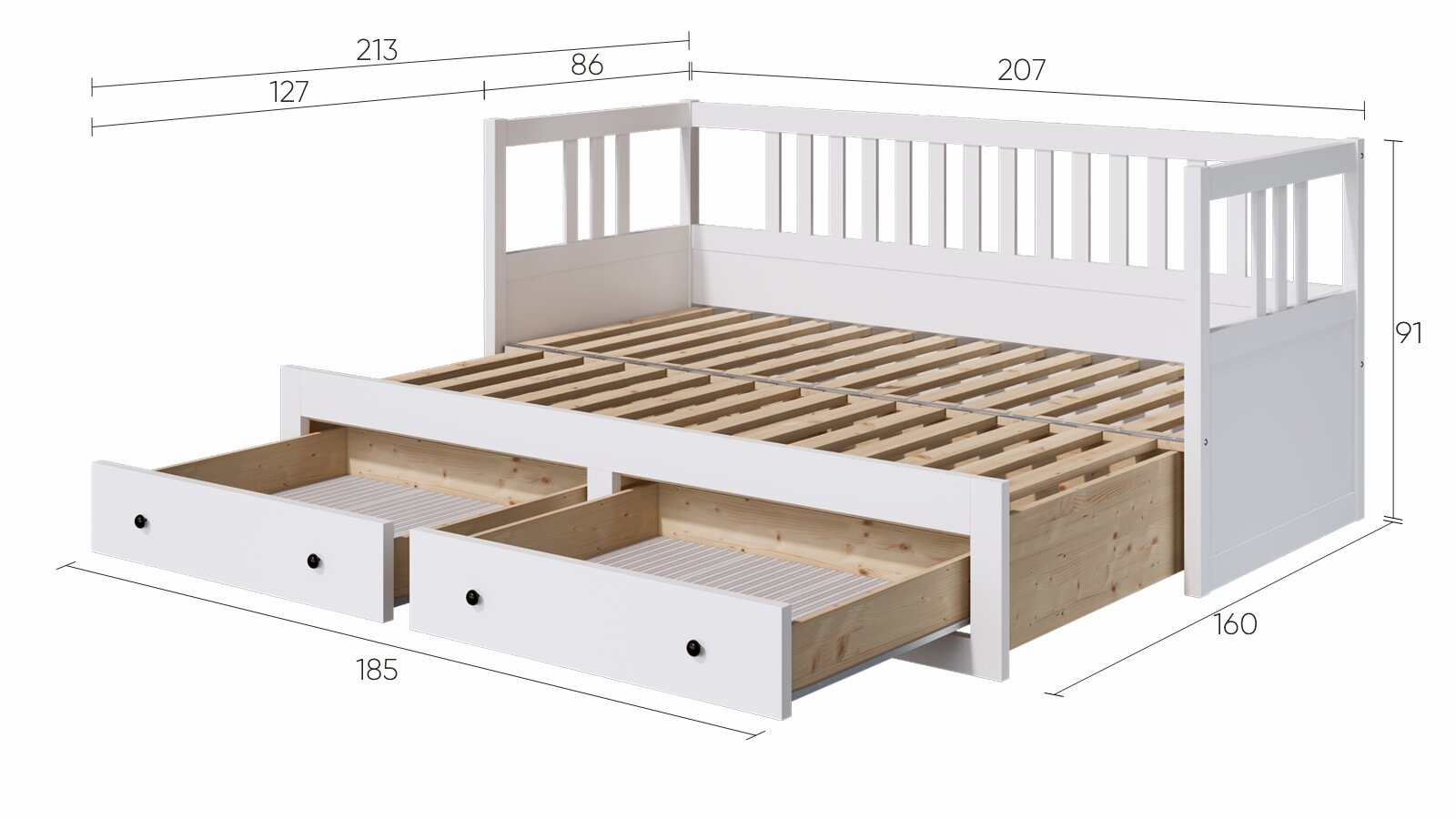 | Особенности | для детей, основание под матрас, раздвижная, с выдвижным спальным местом |