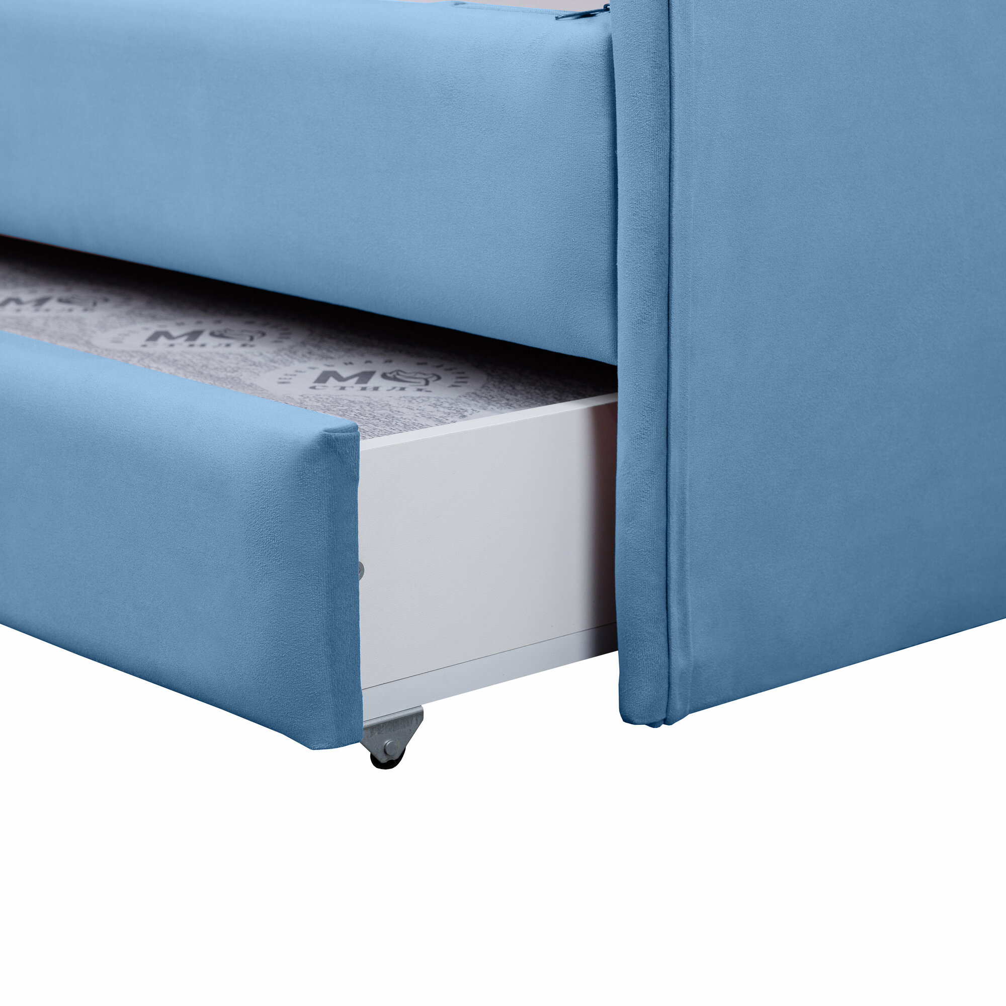 Купить Кровать-диван Хагги 200*90 голубая с защитным бортиком, ящиком для хранения