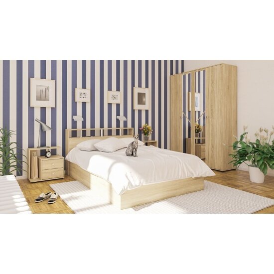 СохранитьКровать Камелия 1400, цвет дуб сонома, ШхГхВ 143,5х217х78,2 см., спальное место 1400х2000 мм., без матраса, основание есть интересное:
