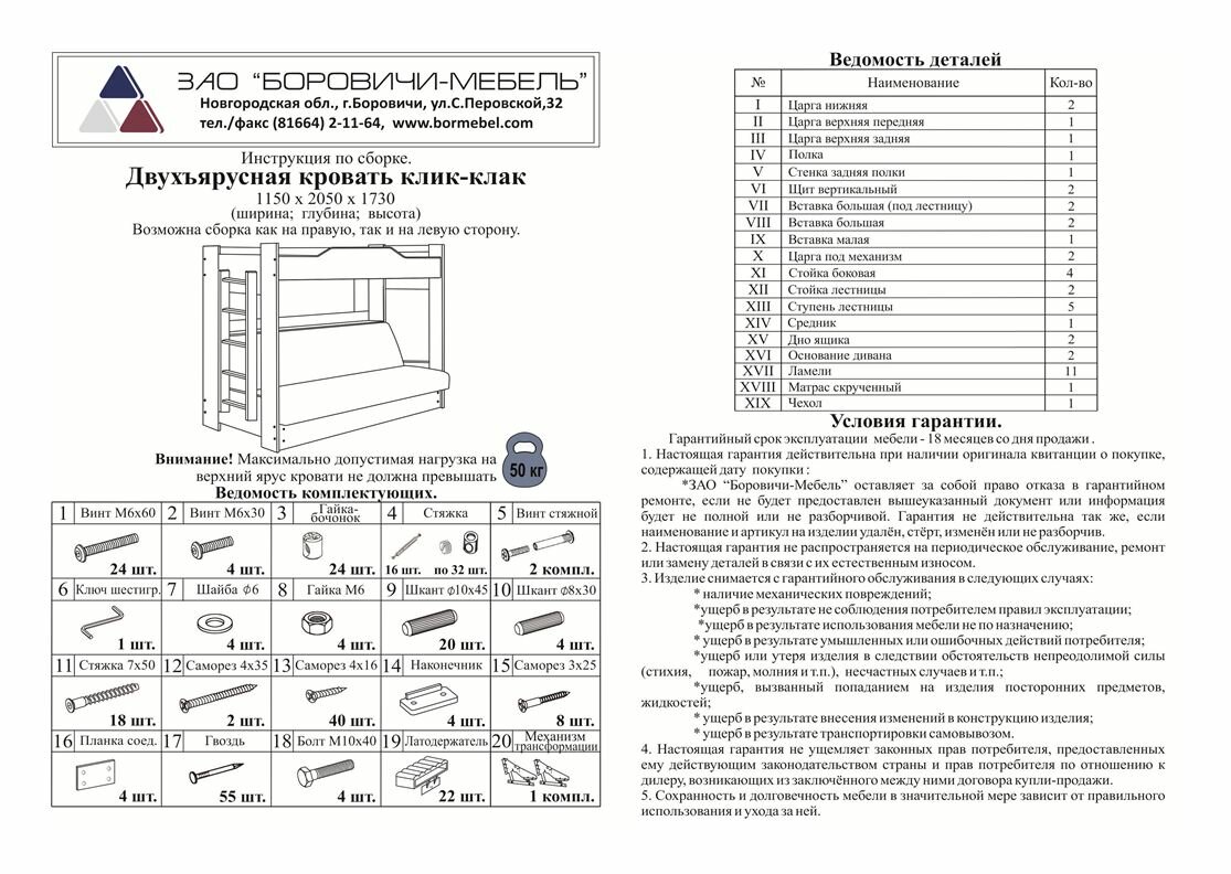 | Дополнительная информация | максимальная нагрузка по паспорту на нижний ярус 50кг |